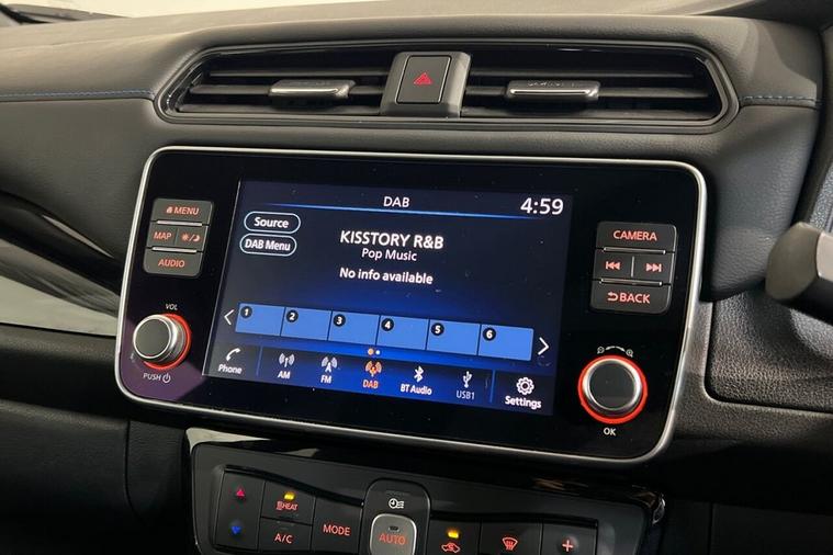 This 2021 Nissan Leaf N Connecta offers excellent peace of mind with its MOT valid until May 2026. This electric vehicle boasts a 40 kWh battery, providing a maximum range of 168 miles when new. Charging at home on a 7kW charger takes approximately 7 hours and 30 minutes, while rapid public charging can take you from empty to 80% in just 1 hour and 20 minutes. Key features include Intelligent Auto Headlights, a DAB radio with Apple CarPlay and Android Auto integration, Blind Spot Warning for added safety, and keyless entry with a push button start. Intelligent Cruise Control also enhances the driving experience. The generous boot space in this Nissan Leaf N Connecta makes it a practical choice for everyday life. Its electric powertrain offers a smooth and quiet drive, distinguishing it from conventional petrol or diesel cars. The inclusion of Apple CarPlay and Android Auto means you can easily connect your smartphone for navigation and entertainment, while Blind Spot Warning provides an extra layer of security on your journeys. The Intelligent Cruise Control adapts to traffic, making longer drives more relaxed.