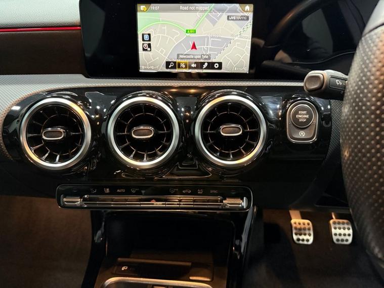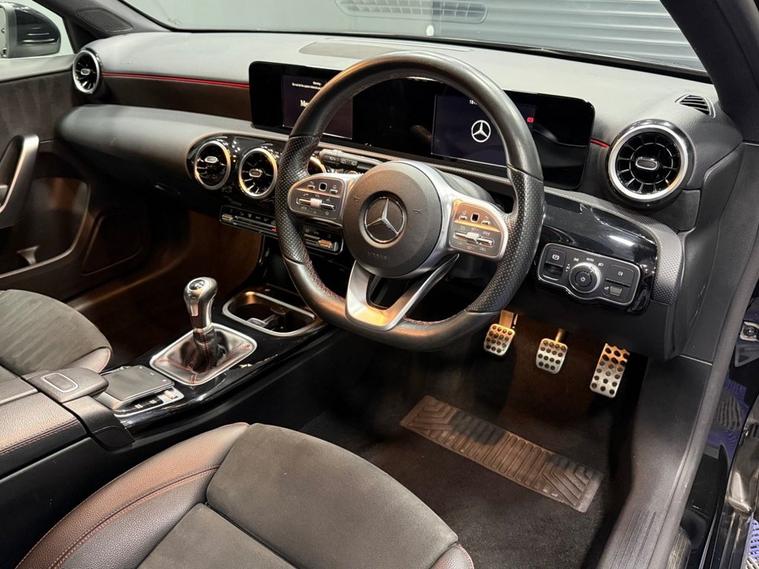 AJC Car Sales presents the MERCEDES-BENZ A-CLASS 1.3 A200 AMG Line Hatchback 5dr Petrol Manual Euro 6 (s/s) (163 ps) finished off in Cosmos Black Metallic with 18 AMG Double Spoke Alloys, Two Keys and a Great Service Record. Presenting the stylish and highly sought-after 2019 Mercedes-Benz A200 AMG Line a premium hatchback that blends sporty aesthetics, advanced technology, and exceptional driving dynamics. Powered by a responsive 1.3-litre petrol engine producing 163 PS, this Euro 6-compliant model offers an engaging manual driving experience with impressive efficiency and smooth performance. The AMG Line specification enhances the A-Class with eye-catching exterior styling, including AMG body detailing, diamond-grille finish, upgraded alloy wheels, and lowered sports suspension for a confident, dynamic road presence. Inside, the cabin showcases Mercedes-Benzs latest design language with high-quality materials, sports seats, and a multifunction leather steering wheel. Equipped with the innovative MBUX infotainment system, this model provides a fully digital cockpit, intuitive voice control, smartphone integration, and a crisp, modern interface. Comfort and convenience are further elevated with features such as climate control, ambient interior lighting, and a suite of safety technologies including active lane assist and collision prevention systems. Combining practicality with premium appeal, the 2019 A200 AMG Line delivers a refined yet sporty driving experience making it an outstanding choice for drivers seeking modern luxury in a compact, efficient, and stylish package.