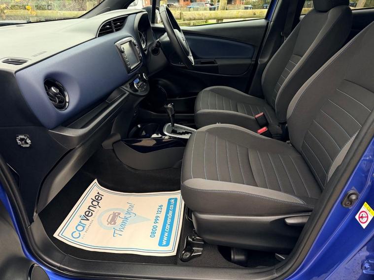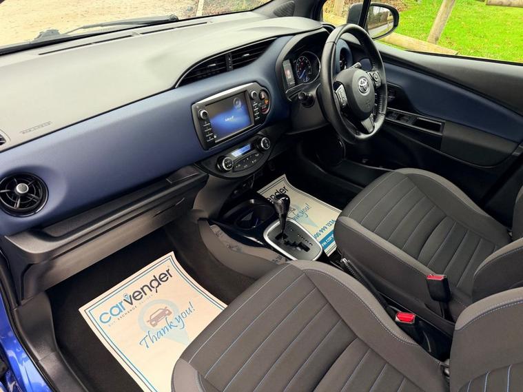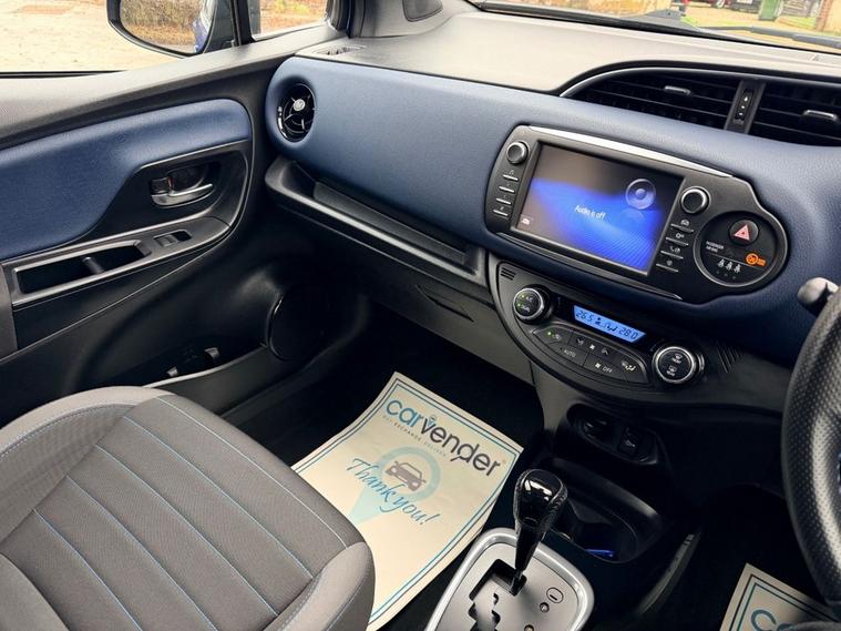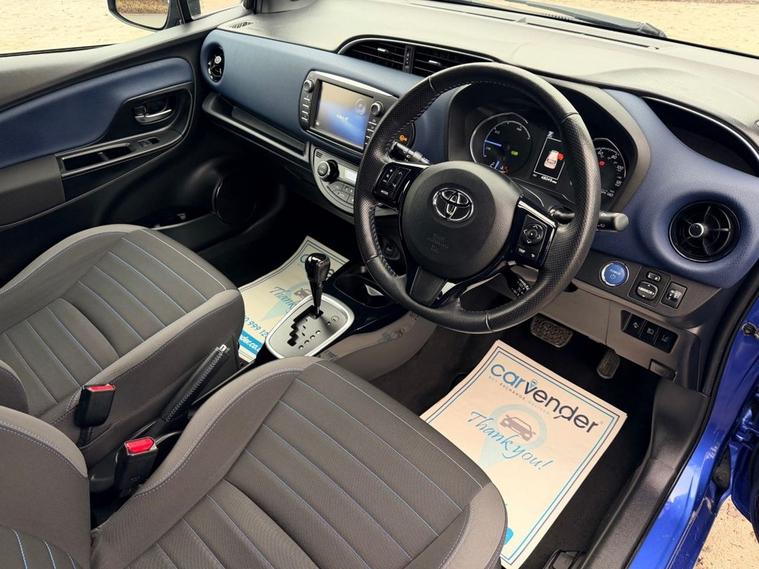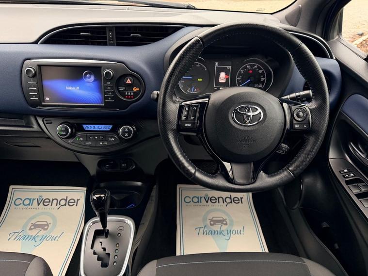 At Carvender we are introducing the practical and reliable 2017 Toyota Yaris 1.5 VVT-h Blue Bi-Tone Hybrid E-CVT 5dr. The 2017 Toyota Yaris is a compact hatchback that offers a perfect blend of efficiency, comfort, and advanced features. This Toyota Yaris is powered by a responsive 1.5 litre VVT-h engine which delivers 100 brake horsepower. From sleek exterior accents to modern interior design elements, this trim level adds convenience and style to every drive. This Toyota Yaris comes with advanced technology features including Reversing Camera, Cruise Control, Lane Departure Warning, Advance Collision Alert, Touchscreen Infotainment System with Bluetooth Connectivity, SatNav and much more. Please refer to advert photos for more features. This Toyota Yaris is in eye-catching colour and in pristine condition with only 48049 miles on the clock. This Yaris has been very well maintained by previous keepers as we have Full Service History from Toyota Main Dealer in the file. Services have been carried out at the mileages of 3965, 7806, 10455, 21241, 27394, 32907, 38705 and 48049 on 05/12/2025. Dont miss out on the opportunity to own this worlds most reliable brand vehicle contact us today to schedule a test drive or visit our website for online home delivery with 14 days right to cancel your order.