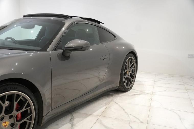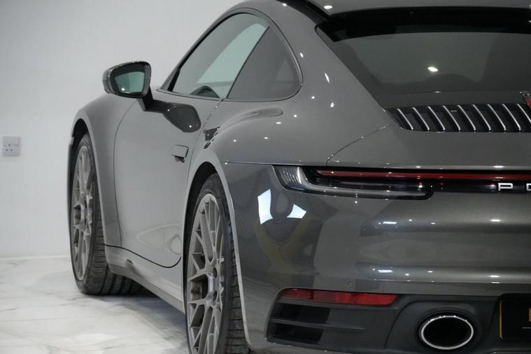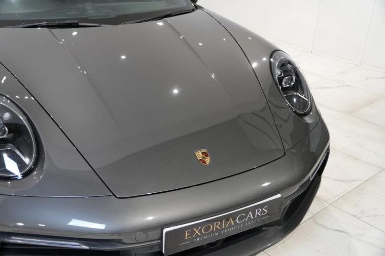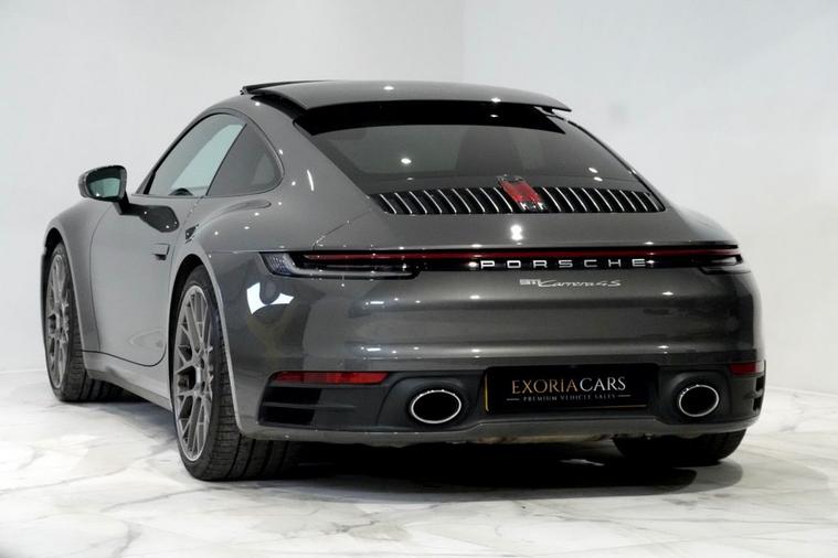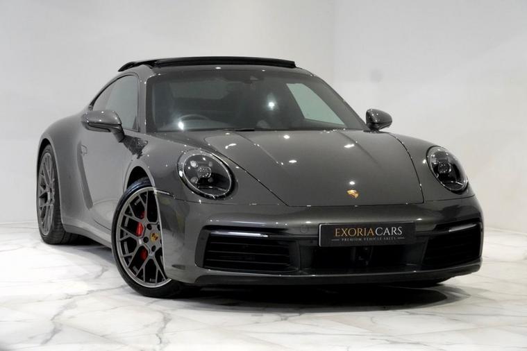 Exoria Cars are pleased to offer this PORSCHE 911 3.0T 992 Carrera 4S Coupe 2dr Petrol PDK 4WD Euro 6 (s/s) (450 ps) registered on the 22/05/2019. This particular model is presented in Agate Grey featuring 20in Front 21in Rear Alloy Wheels - RS Spyder Design. This vehicle has many optional spec extras. These include (but are not limited to) BOSE Surround Sound System, Sports Exhaust System, Adaptive Cruise Control, Park Assist - Front and Rear with Surround View, Adaptive Sports Seats Plus - Electrical 18-Way with Memory Package, Lane Change Assist, Electric Glass Slide and Tilt Sunroof, Electrically Folding Exterior Mirrors, Privacy Glass, GT Sport Steering Wheel in Leather - Heated, Porsche Crest on Head Restraints, LED Main Headlights including Porsche Dynamic Light System - PDLS, Sport Chrono Package including Mode Switch, active safety features and much more. For full details please do enquire via email or phone. This vehicle comes with 2 keys, a full (clear) HPI check, FULL PORSCHE SERVICE HISTORY. This vehicle comes with EXTENDED PORSCHE WARRANTY until 30/07/2026. All 5* reviews on all platforms giving you peace of mind with your new purchase! AA Checks/RAC Checks are welcome! Any used car purchase also qualifies for a free interior and exterior deep clean detail worth £400 with our partnered company DD Detailing who are one of the largest detailing companies in the UK. This vehicle is ready to drive away today! PCP and HP finance available from 9.9% APR (subject to status)