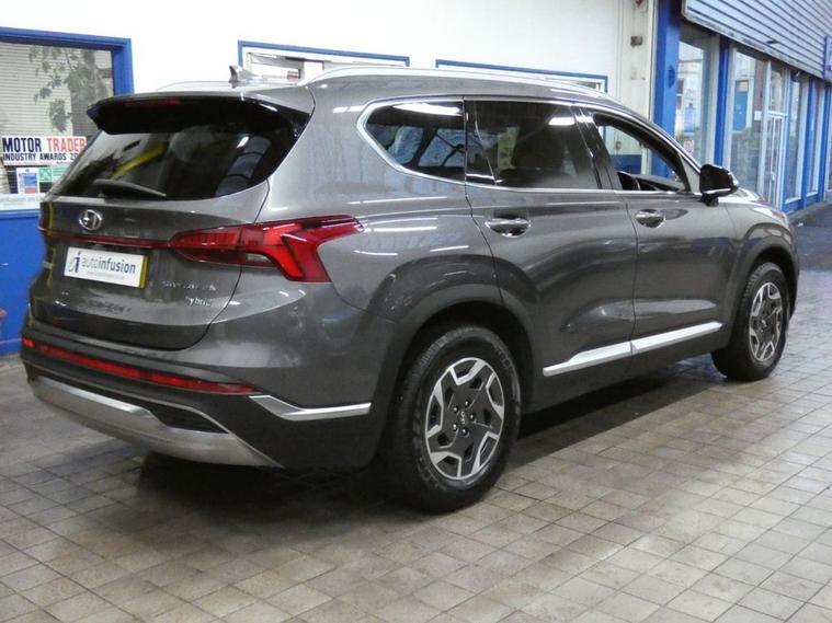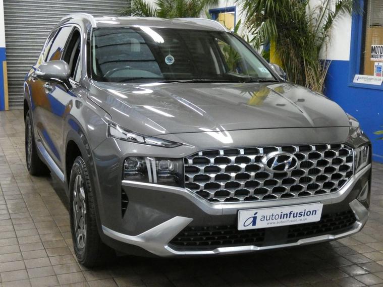 Stunning example, This Hyundai Santa Fe suv Petrol Hybrid 4WD is a sleek and efficient petrol hybrid suv that combines modern design with advanced technology. Finished a metallic shade of Grey, this Santa Fe is styled to impress with two tone alloy wheels, sharp LED headlights, giving it a refined yet sporty presence on the road. Inside, youll find a comfortable leather interior equipped with automatic air conditioning to keep every journey pleasant and relaxed. At the heart of its tech setup, the Hyundai multimedia system brings all your connectivity needs to life, featuring Sat nav, DAB radio, Bluetooth and seamless smartphone integration, including Apple CarPlay and Android Auto, for easy access to music, maps and apps. Maneuvering is effortless with the integrated reverse camera, making parking in tight spots a breeze. Combining Hyundais reliable hybrid efficiency with smart technology and stylish design, this Sata fe is an ideal choice for anyone seeking an efficient yet premium 7 seater suv experience. This vehicle is compliant with Clean Air Zone (CAZ) or Ultra Low Emission Zone (ULEZ) regulations, meaning it produces low emissions and helps to improve air quality in our cities. Genuine low mileage, 1 owner from new. excellent service history 3 services to 28, 102 miles Aug 2025 next service due Aug 2026, Mot till Oct 2026, Hyundai warranty till Nov 2027. Please call for more details, Autoinfusion Ltd, is a family run business with over 30 years motoring experience. On our website you will find our vehicles are generally advertised with upto 100 exterior and interior pictures, 360 interior images, exterior panoramic views and web video showcasing our stock. As an AA approved garage, prior to sale, the majority of our vehicles are inspected by an AA trained technician and pass a full 128 multi-point AA inspection, these cars are highlighted on our website with the AA logo. Please note AA inspections are also available on request if the vehicle has not yet been inspected. All of our stock is constantly price checked ensuring you pay and receive the best package. You will also find details of special promotions on our website. Contact us to book an appointment for a viewing and test drive. We can conduct a live viewing of the vehicle to your mobile device or send you a personalised video highlighting the key features or anything else you may require, which can be viewed in your own time. With our Finance options we can provide class leading packages and rates. We highly recommend you reserve this car on-line , please visit dealer's website or call one of our sales specialists for more information. We look forward to welcoming you to Autoinfusion.