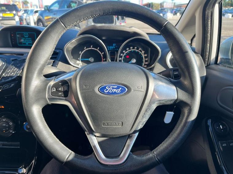 For a while now Ford Fiestas are one of the most bought hatchbacks, this one in particular is very cheap to run with only £20.00 to tax and returning up to 65.7 mpg on a combined cycle Under the bonnet lies a 1.0 litre petrol engine which is paired with a ultra smooth 5 speed manual gear box what produces 99 bhp The Fiesta makes a great second car or even a great run around, however this car can also make a great first car for someone as it benefits from group 11 insurance Inside you will find 5 doors for easy access and seating for 5, in the back is a very generous boot space for all your needs As you would expect from Ford it comes with great spec such as telephone connection, steering wheel mounted controls, radio and just so much more