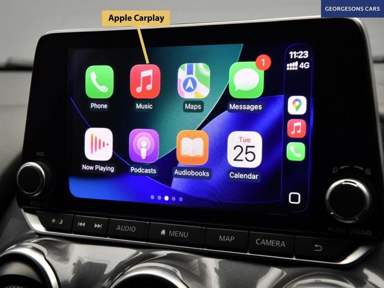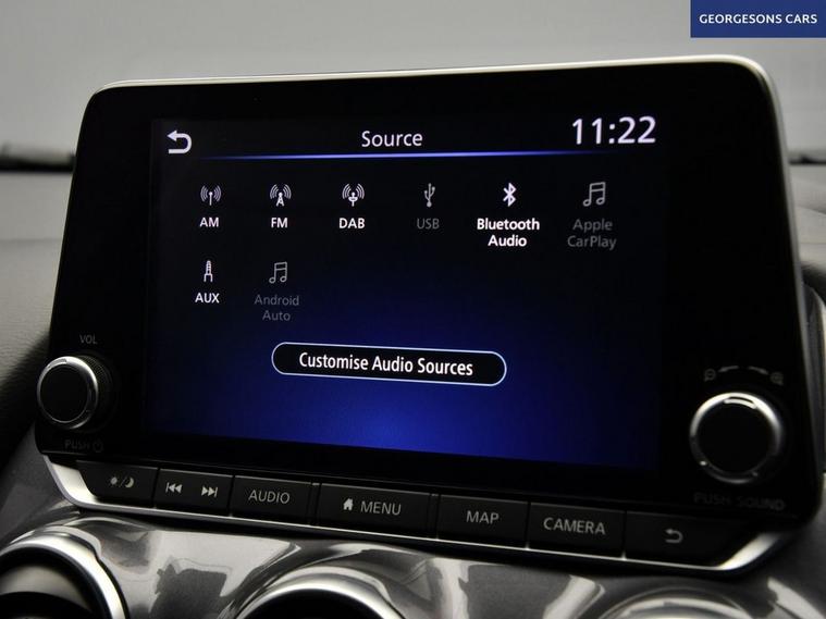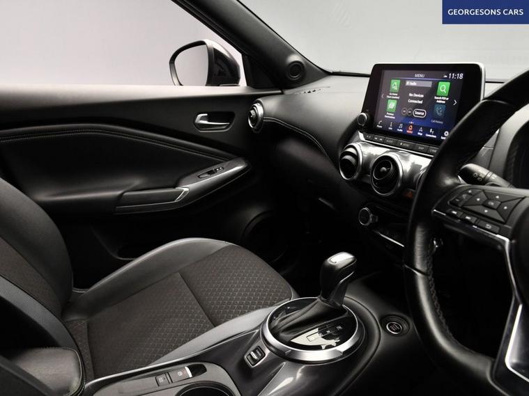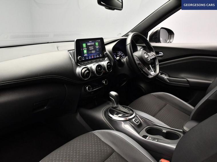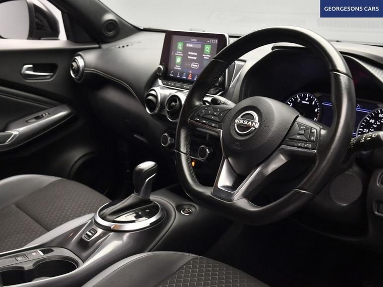 The Nissan Juke 1.0 DIG-T N-Connecta combines a punchy 1.0-litre turbo petrol engine with 114hp, delivering 0-62mph in 11.1 seconds and up to 47.9mpg in this front-wheel-drive setup with a smooth 7-speed DCT automatic transmission. The N-Connecta trim brings bold styling and a premium interior. With one owner, this Juke is in excellent condition. Navigate effortlessly with integrated satellite navigation, Apple CarPlay, Bluetooth and DAB radio. Parking is a breeze thanks to the reverse camera. Stay comfortable with climate control. Paddle-shift gears, cruise control with speed limiter and push-button start add everyday refinement. The distinctive five-door SUV includes a 422-litre boot for practicality.