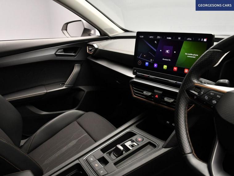 The Cupra Formentor 1.5 TSI V1 combines a responsive 1.5-litre turbo petrol engine with 150hp, delivering 0-62mph in 8.9 seconds and up to 44.8mpg in this front-wheel-drive setup with a smooth 7-speed DSG automatic transmission. The V1 trim offers bold sporty style with 18-inch alloys and a premium interior. With one owner, this Formentor is in excellent condition. Stay connected with Apple CarPlay, Bluetooth, DAB radio and integrated satellite navigation. Parking is easy with parking sensors. Stay comfortable with 3-zone climate control and dual-zone climate. Adaptive cruise control, paddle-shift gears and lane assist deliver relaxed, safe driving every day. The stylish five-door SUV includes a 450-litre boot for practicality.