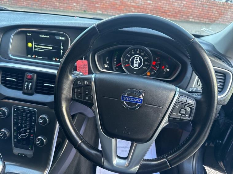Only £20 a year road tax : Fully stamped service book (please see photos) : 2 Keys : Bluetooth : Satellite Navigation system : DAB Radio : Quality full leather upholstery : Heated front seats : Heated screen : Isofix fittings : Air-conditioning : Cruise control/Speed limiter : Auto headlights/wipers : Volvo City-Safety system : Volvo Active-Bending lights : Rear parking sensors : Cargo/Load cover : 17-inch alloy wheels : Stylish Caspian blue paintwork : Please go to dealer's website to see more vehicles like this.................................... This 2015 Volvo V40 D2 SE Lux Nav presents an exceptional ownership proposition with only two previous owners and a remarkably low mileage of 63, 250 miles for its age. This stylish hatchback is powered by an efficient 1.6 litre diesel engine, offering an impressive fuel economy of up to 83 miles per gallon. The SE Lux Nav trim level ensures a comfortable and convenient driving experience, featuring Rear Park Assist to aid with parking manoeuvres, and a Winter Pack that includes heated seats for those colder journeys. Further enhancing this Volvo V40 are its advanced technology and practical features. Enjoy your favourite music through the Sensus Connect system, complete with a Premium Sound system by Harman Kardon. For everyday practicality, the luggage compartment boasts a flexible floor with a handy grocery bag holder, and the illuminated gear knob adds a touch of refinement. This V40 also benefits from a low insurance group and low CO2 emissions, making it a cost effective choice for many drivers, indicating it is better than many similar vehicles on the market.