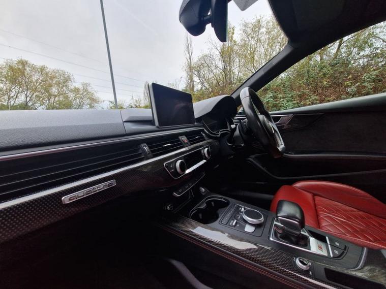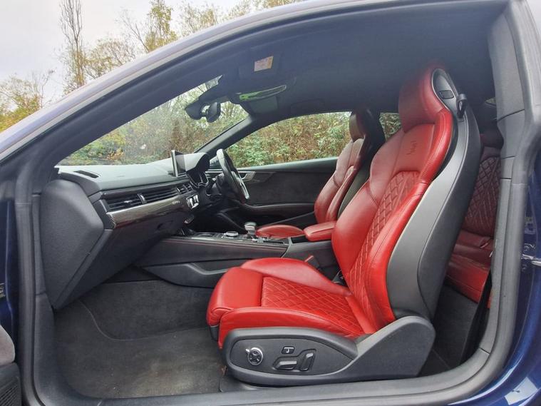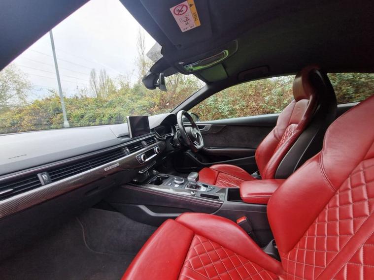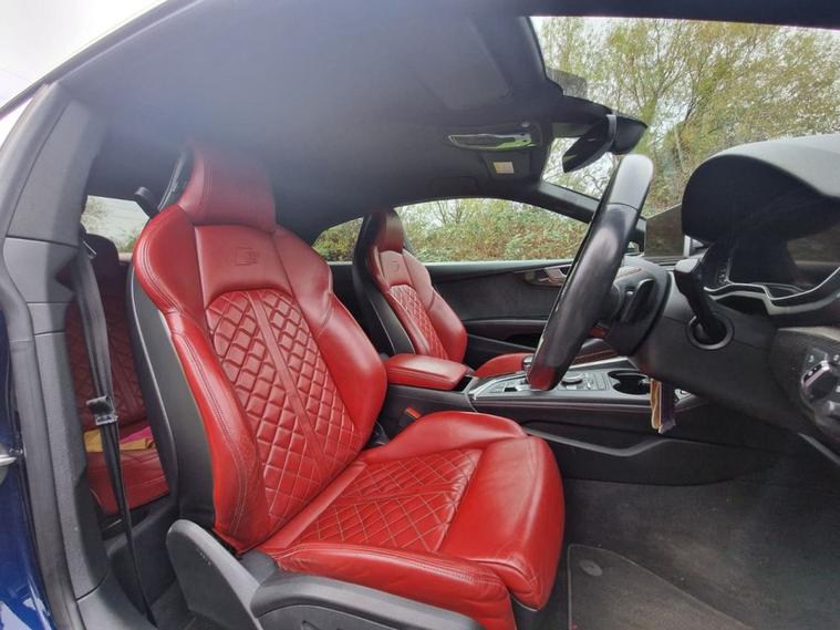 FINANCE AVAILABLE Here we have for sale a AUDI S5 3.0 TFSI V6 Coupe 2dr Petrol Tiptronic quattro Euro 6 (s/s) (354 ps)This car is incredibly good condition both inside and out and benefits from in an incredible specification, full service history and Huge spec includes Keyless entry, Keyless Start B&O Sound, Stunning heated red leather electric seats with massage function, Apple car play, Park Assist with reverse camera, Flat bottom multifunction steering wheel and more. This car sounds amazing and is a thrill and a joy to drive. MUST BE SEEN AND DRIVEN TO BE APPRECIATED