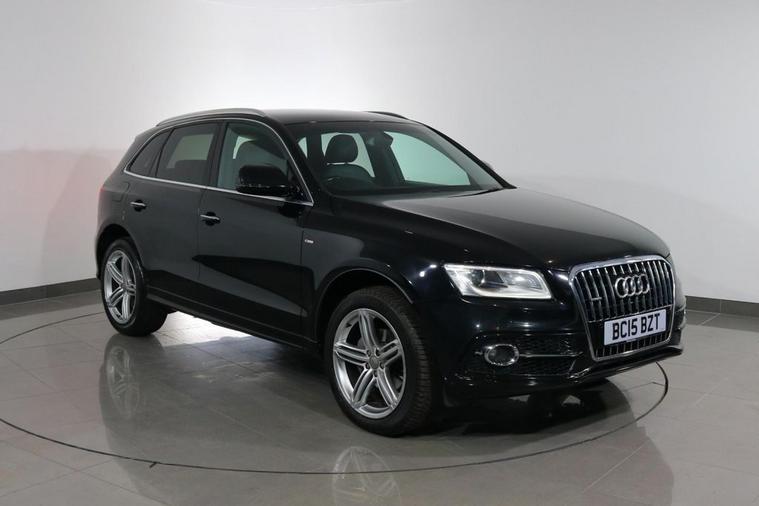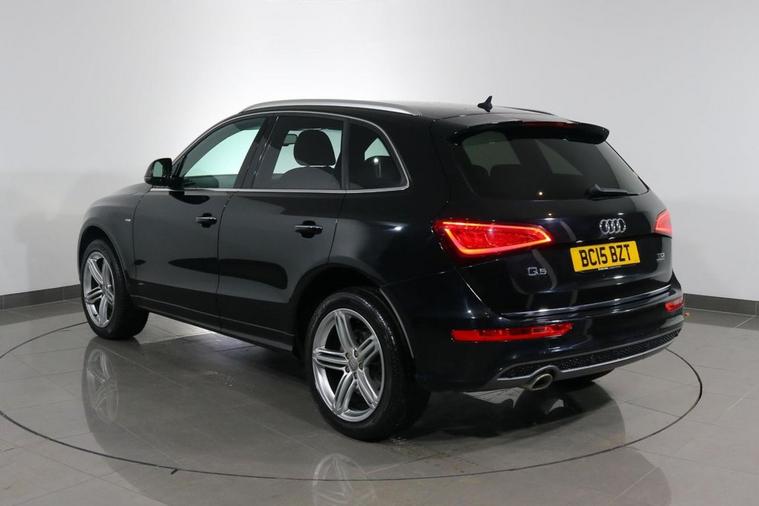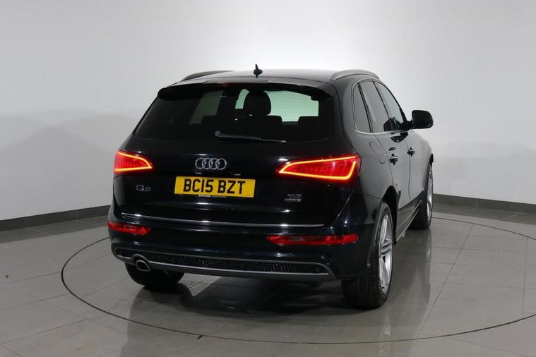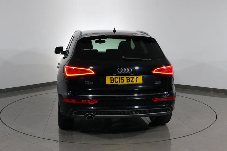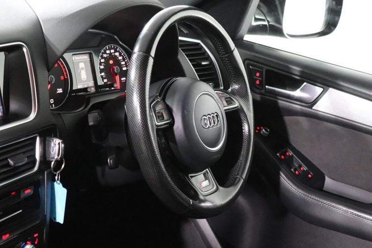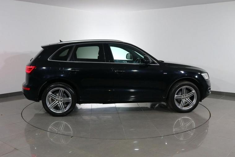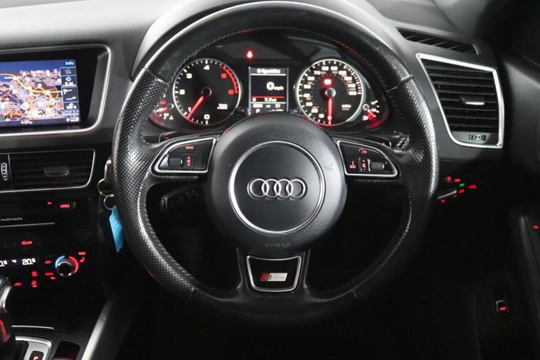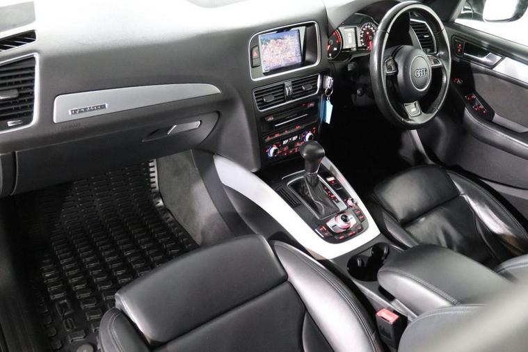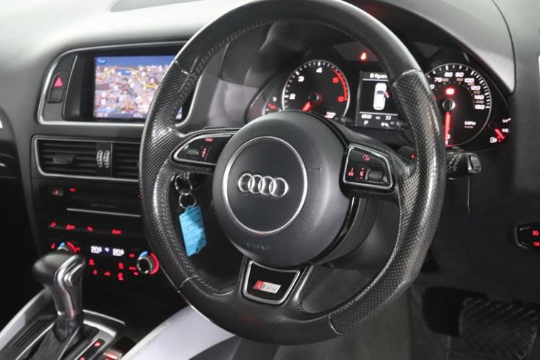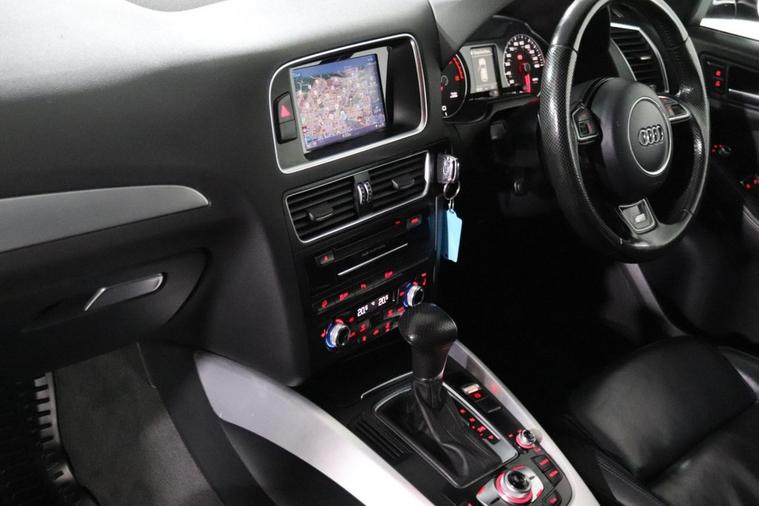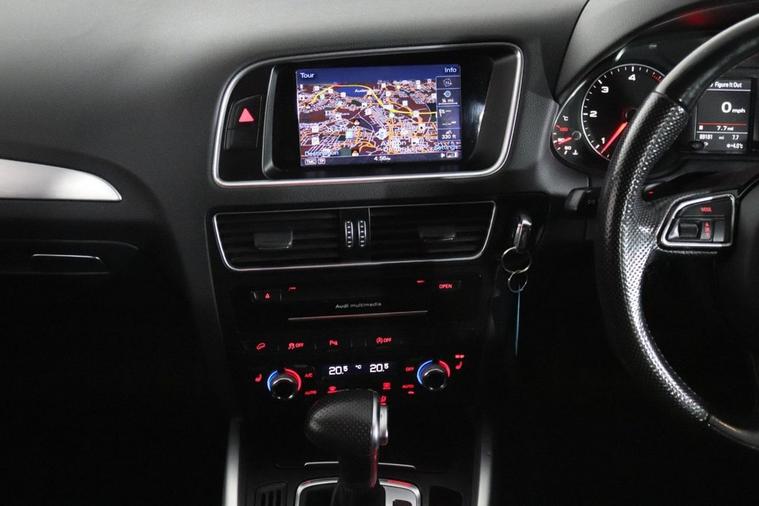 This well maintained Euro 6 AUTOMATIC QUATTRO Audi Q5 S Line Plus finished in Brilliant Black looks fantastic complemented by 20 inch Alloy Wheels, Rear Privacy Glass, S Line Body Styling and LED Running Lights. Find your way with integrated SATELLITE NAVIGATION with LCD Display. Park in ease with FRONT & REAR PARKING SENSORS. Sit in luxury with FULL LEATHER Upholstery with HEATED SEATS and S Line Embossing. Keep connected with BLUETOOTH Phone System. Listen to your music through DAB Digital Radio. Comfortable to drive with Tri-Zone CLIMATE CONTROLLED AIR CONDITIONING and CRUISE CONTROL. Well equipped with Power-Operated Tailgate, Auto XENON Headlights and Rain-Activated Wipers. Also fitted with Multifunctional Paddle Shift Alloy Wheels, ISOFIX seats, Immobiliser and Remote Door Locking. Buy in confidence with SERVICE HISTORY with 8 x Documented Services.