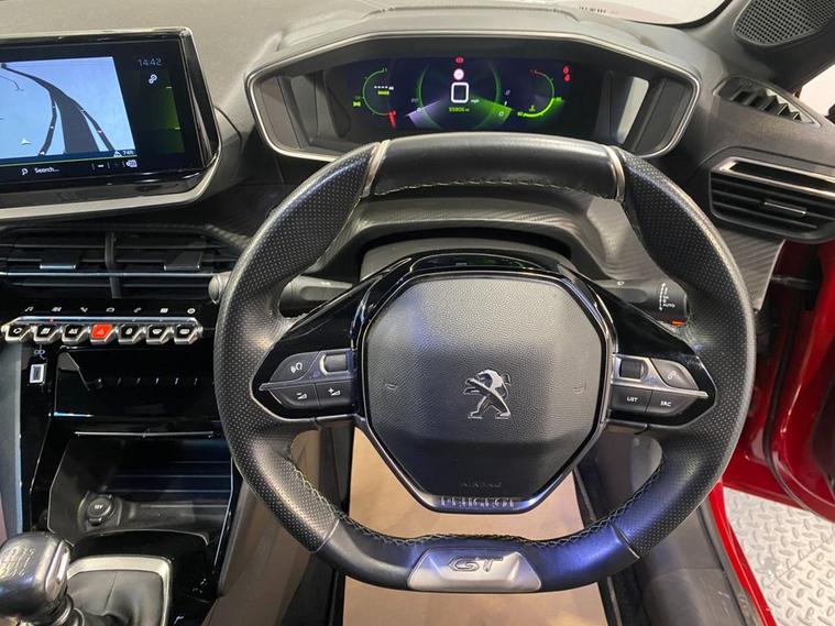 With its striking design and a fantastic interior the Peugeot 208 is a superb hatchback to look at, inside and out. It comes packed with technology and really stands out from the crowd with its low stance and intricate detailing. This ones finished in Elixir Red Pearl - a stunning colour that really sparkles, and has rear privacy glass, a high level spoiler, GT bodystyling and 17 diamond cut alloy wheels. The sports seats are trimmed in part leather and are supportive, comfortable and very clean. Peugeots 3D digital dials are projected onto different layers to give a three-dimensional effect and look great. The 10 infotainment system has eveything you need - navigation, Bluetooth, parking camera and Apple CarPlay / Android Auto. Audio and telephone controls can be accessed by the leather GT steering wheel and as well as the camera, the car has both front and rear park sensors.
