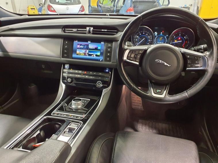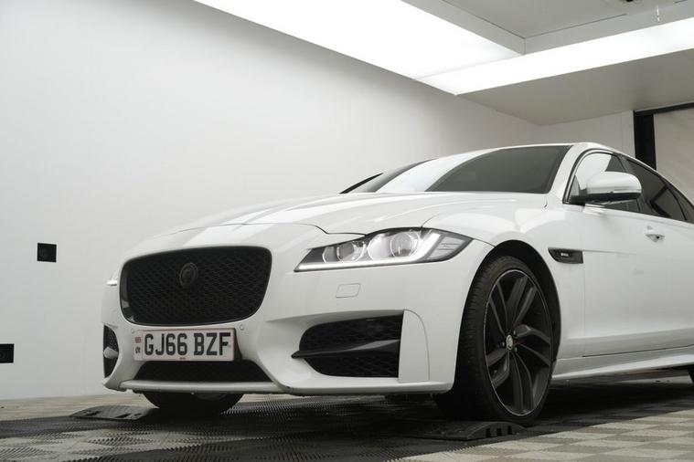 This 2016 Jaguar XF d R-Sport offers peace of mind with a clear vehicle history check and a 6 month warranty. This stylish saloon features a 2.0L Diesel engine, meeting Euro 6 emission standards. It boasts impressive R-Sport trim, enhanced by the striking Black Pack and 20in Venom Twin 5 Spoke alloy wheels with a Gloss Dark Grey Diamond Turned finish. For convenience and safety, it includes LED headlights with distinctive LED J Blade daytime running lights and a rear view camera integrated with parking assistance. The Jaguar XF d R-Sport stands out with its low CO2 emissions and a low insurance group, indicating it is more economical to run than many similar vehicles. The Park Assist feature further simplifies manoeuvring in tight spaces, complementing the rear camera. This combination of sophisticated styling, advanced technology, and cost effective ownership makes this XF a compelling choice.
