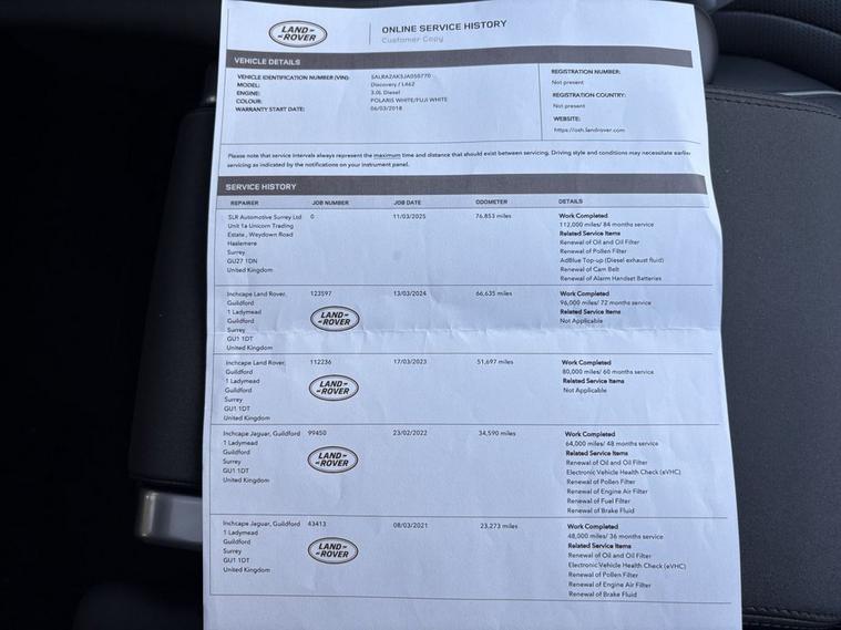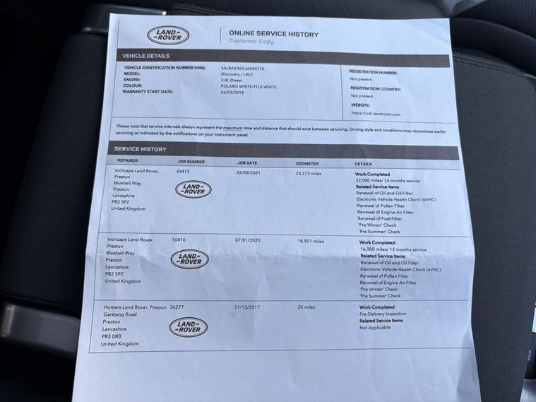 This 2018 Land Rover Discovery TD V6 HSE boasts a clear vehicle history, offering you peace of mind. This capable seven seat model features a powerful 3.0L Diesel engine and Four Wheel Drive, ensuring its ready for any adventure. The HSE trim level comes equipped with a suite of convenient features, including a Rear View Camera for effortless parking assistance, Automatic Headlights that adapt to changing light conditions, and Keyless Entry for easy access. Inside, youll appreciate the comfort of 16 Way Electric Memory Front Seats, allowing you to find your perfect driving position. The Discovery TD V6 HSE is designed for both performance and practicality. Its Euro 6 emission classification means it meets current environmental standards. With a substantial towing weight of 3500 kg, its well suited for towing caravans or trailers. This particular model also benefits from a low insurance group, making it an economical choice to own and run. Furthermore, its impressive acceleration of 0-60mph in just 7.7 seconds demonstrates its strong performance capabilities, setting it apart from many other vehicles in its class.