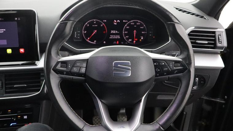 This 2020 SEAT Tarraco TDI XCELLENCE boasts a clear vehicle history check, offering peace of mind for its next owner. This stylish seven seater SUV is powered by an efficient 2.0 litre Euro 6 diesel engine, delivering an impressive 50 miles per gallon. The XCELLENCE trim level comes equipped with a host of desirable features, including full LED headlights for enhanced visibility, and three zone climate control to ensure comfort for all passengers. Navigating tight spaces is made easier with the integrated park assist system and a rear view camera, while the media system colour with Bluetooth connectivity keeps you entertained and connected on the go. The SEAT Tarraco is designed for practicality and comfort, making it an excellent choice for families. Its low insurance group rating further adds to its appeal, suggesting lower running costs. The service history indicates that the vehicle has received some attention, and combined with the clear vehicle history check, this Tarraco presents a compelling package for those seeking a spacious and well equipped SUV.