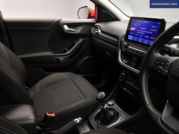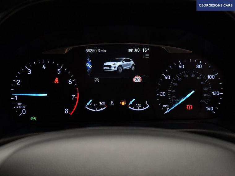 This Ford Puma 1.0T EcoBoost MHEV Titanium combines a lively 125hp mild-hybrid turbo petrol engine with 0-62mph in 9.8 seconds and up to 52.3 mpg in this front-wheel-drive setup with a precise 6-speed manual gearbox. The Titanium trim brings premium everyday luxury with 17-inch alloys and a high-grade interior. With one owner and five services, this Puma is in superb condition. Stay connected with Apple CarPlay, Bluetooth, DAB radio and integrated satellite navigation. Parking is easy with rear parking sensors. Stay comfortable with climate control and the heated windscreen for instant clear vision. Cruise control with speed limiter makes longer journeys relaxed. The stylish five-door crossover includes a clever 456-litre MegaBox boot for practicality.