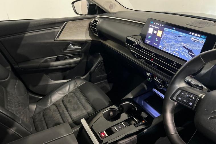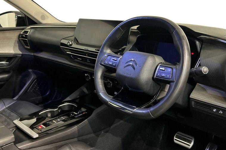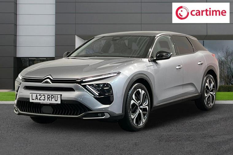 This 2023 Citroen C5 X Shine Plus is presented with a clear vehicle history check, offering you peace of mind. This striking model features a 1.6 litre petrol engine, meeting Euro 6 emission standards. Inside, youll find a multifunction heated steering wheel crafted from grained leather, complete with paddle shifters for manual gear selection and controls for driving assistance and infotainment. The Shine Plus trim also boasts LED headlamps with automatic high beam assist, and an extended head up display that projects information onto the windscreen. For added convenience, there is a handy storage box located under the main boot floor. The Citroen C5 X Shine Plus excels with its Citroen Advanced Comfort Suspension, designed to provide an exceptionally smooth and refined driving experience, setting it apart from other vehicles in its class. This model also offers generous boot space, perfect for accommodating luggage or shopping. When it comes to performance, the C5 X accelerates from 0 to 60 miles per hour in 10.4 seconds, demonstrating a capable and responsive drive.