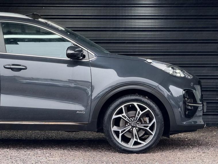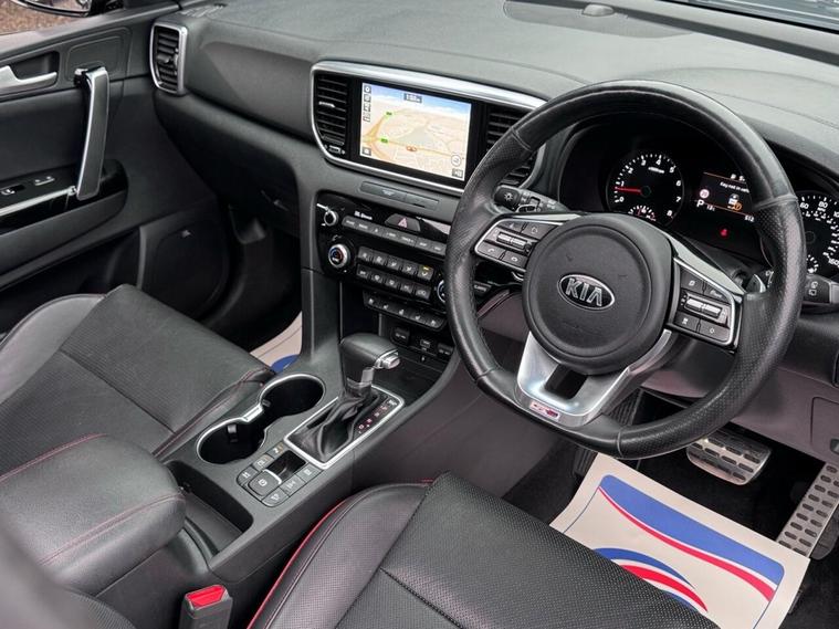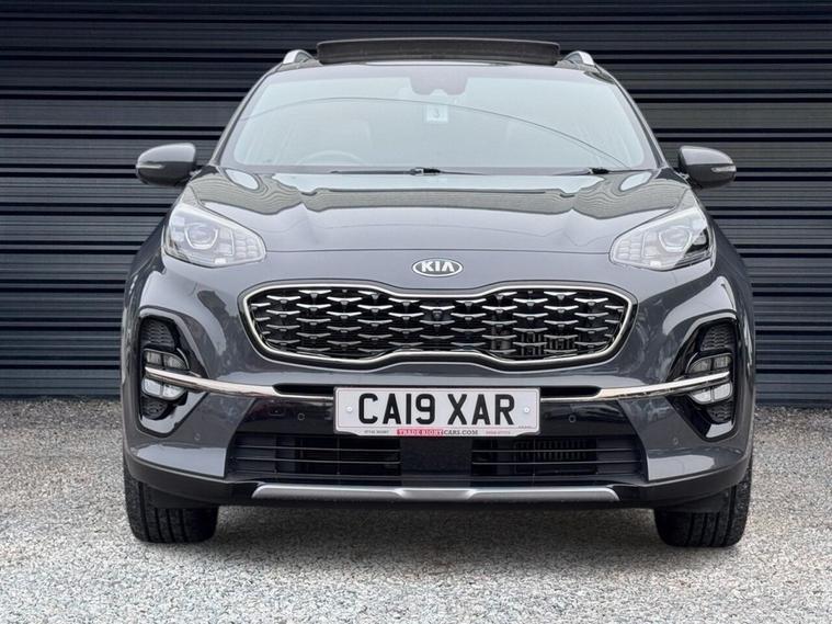JUST ARRIVED & READY TO DRIVE AWAY! 2019/19 Kia Sportage 1.6 T-GDi GT-Line S Nav [Pan Roof] AWD finished in Dark Penta Metal. We are pleased to offer this lovely 5 door petrol SUV. This is the highly desirable 1.6 litre model with a 7 speed automatic transmission that offers 174 BHP. It has covered just 51, 236 miles with full service history (7 stamps) and drives as you would expect. Just serviced upon arrival. MOT until 25th November 2026 with no advisories (we have renewed all 4 tyres as part of our vehicle preparation). The car is ready to drive away. We will also include a complimentary 12 month AA breakdown cover. One owner from new. Euro 6 status - ULEZ compliant. A superb example with the sought-after GT-Line S specification. Highlights include; full panoramic slide/tilt roof, heated seats x 4, 8 HD touchscreen with navigation, full leather upholstery, 19 two-tone diamond cut alloy wheels, smartphone app connectivity, keyless entry/start, front/rear parking sensors with rear camera, privacy glass and dual A/C climate control. The full specification list can be found on our website. Advertised below the AutoTrader RRP. Please let us know if you would like any further information or a video sent via WhatsApp.