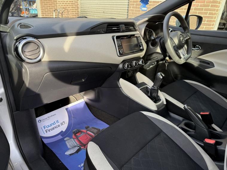 Scotts of Leeds used Car Sales are pleased to offer this NISSAN MICRA 1.0 Acenta Hatchback 5 Door Petrol Manual in Silver. The car is in good condition throughout, in a lovely colour combination and a great specification including Apple car play, Bluetooth, Cruise control, Lane departure warning, USB point, Aux point, Automatic lights & wipers, Speed limit display, Isofix, Alloy wheels and much much more. The car will be supplied with an up to date service record including 6 services, an MOT until July 2026 and 2 Keys ready to drive away. 3 MONTH NATIONWIDE WARRANTY provided with all vehicles. NATIONWIDE DELIVERY also available. A guaranteed 12 Months MOT can be added for an extra £100. DISCLAIMER: The above specification is true and correct. Any other specification listed elsewhere can sometimes be incorrect. Please check with Sales Executive to clarify this if needed prior to purchase.