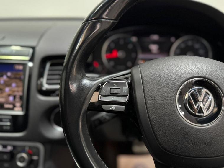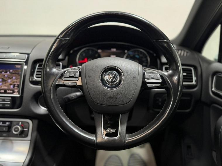 ** NATIONWIDE DELIVERY ** X2 KEYS ** ULEZ COMPLIANT ** SUNROOF ** HEATED SEATS & HEATED STEERING WHEEL ** SERVICE HISTORY ** FRESH SERVICE ** 1 YEAR MOT ** 6 MONTH WARRANTY ** 12 MONTH AA BREAKDOWN COVER ** The Volkswagen Touareg 3.0 TDI V6 BlueMotion Tech R-Line SUV combines luxury, performance, and advanced technology. It features a refined interior with 2-zone electronic climate control, heated front seats, panoramic electric sunroof, leather-trimmed gear knob, and a sliding/reclining modular rear seat system. The cabin is equipped with modern conveniences such as an 8-inch colour screen, RNS 850 touch screen navigation with voice control, Bluetooth hands-free, DAB+ digital radio, SD card reader, MDI multi-device interface, automatic dimming rearview mirror, footwell illumination, and multiple storage and load lashing options. Keyless entry, automatic headlights, front and rear parking sensors, and an electronic parking brake with auto hold enhance ease of use. On the exterior, the SUV sports the distinctive R-Line styling package with body-coloured bumpers and door handles, side skirts, radiator grille, roof spoiler, 20-inch Tarragona alloy wheels, and darkened rear light clusters. Safety and performance features include Bi-Xenon headlights with dynamic curve function, automatic post-collision braking, driver alert system, ESP, ASR, TCS, electronic differential lock, trailer stability control, and tyre pressure monitoring. Additional highlights include chrome-trimmed air vents and window surrounds, aluminium-look pedals, heated and folding mirrors, front fog lights with cornering lights, and a sports suspension for enhanced driving dynamics. This model perfectly blends style, comfort, and advanced driving technologies.