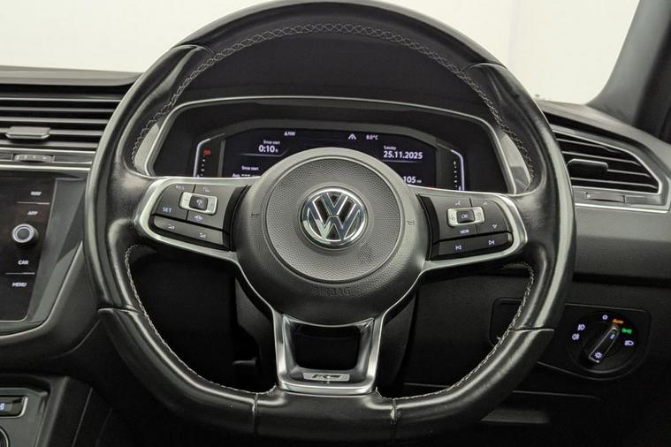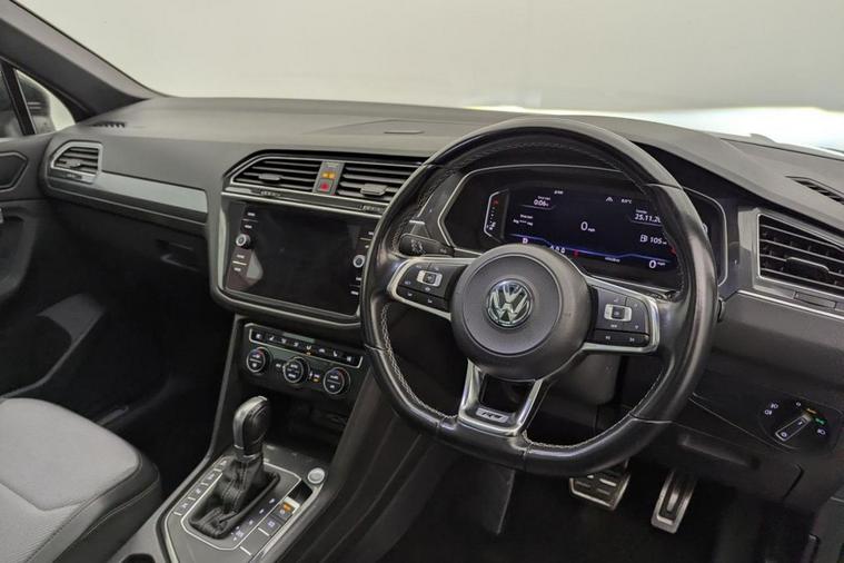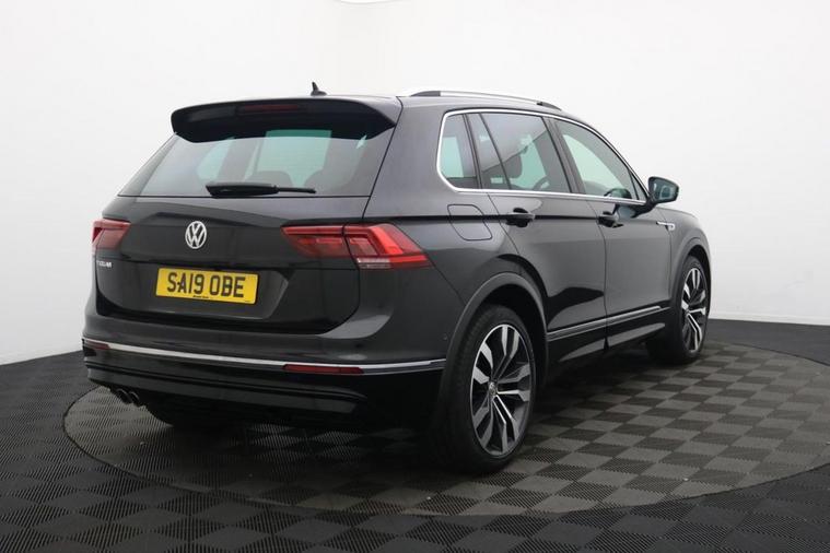 Henson Car Store Presents VOLKSWAGEN TIGUAN 1.5 TSI EVO R-Line SUV 5dr Petrol DSG Euro 6 (s/s) finished in Black, this car comes with service history. This 2019 Volkswagen Tiguan TSI EVO R-Line presents an exceptional opportunity with its remarkably low mileage of just 43, 435 miles for its age. As a Euro 6 compliant model, it features a 1.5 litre petrol engine, offering a blend of efficiency and performance. The R-Line trim ensures a sporty and stylish aesthetic, complemented by the impressive acceleration of 0-60mph in 9.2 seconds. This particular example also benefits from a low insurance group, making it an economical choice for many drivers. Beyond its performance and running costs, this Tiguan stands out with its generous boot space, providing ample room for luggage, shopping, or sports equipment. Its low CO2 emissions further highlight its environmental consideration compared to similar vehicles. These combined factors, including the low mileage, low insurance group, low CO2 emissions, and strong acceleration, position this 2019 Volkswagen Tiguan TSI EVO R-Line as a well rounded and appealing option.