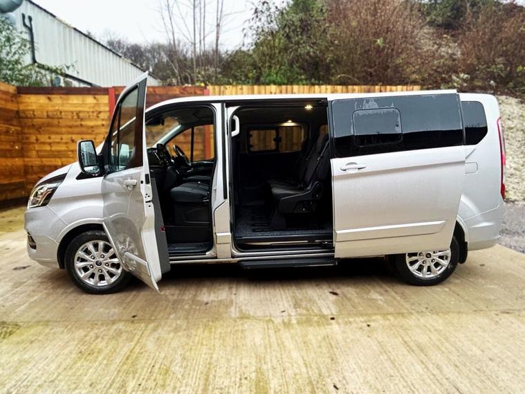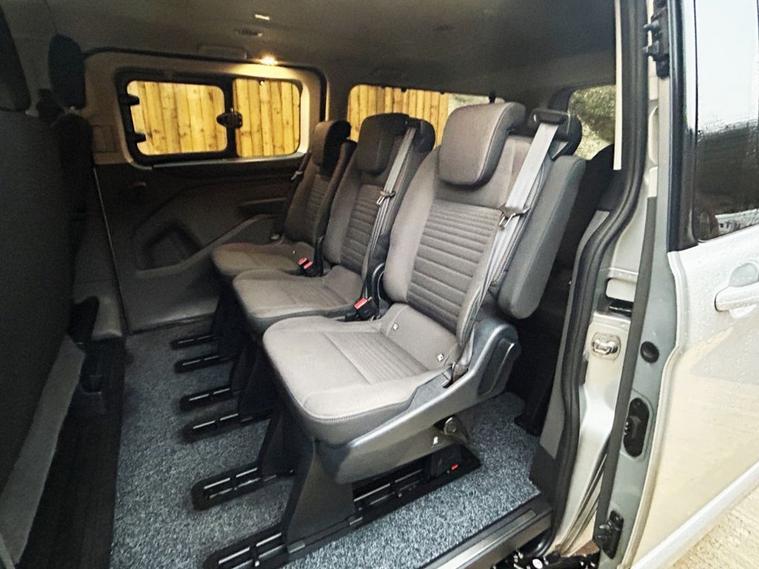 This McElmeel converted Ford Transit Custom Wheelchair Accessible Vehicle (WAV) has 7 Seats (3 Front and 4 Rear). Equipment includes Wheelchair Ramp, Air Conditioning, Electric Front Windows, Electric Adjustable Wing Mirrors, Power Steering, Remote Central Locking, Tinted Rear Windows.