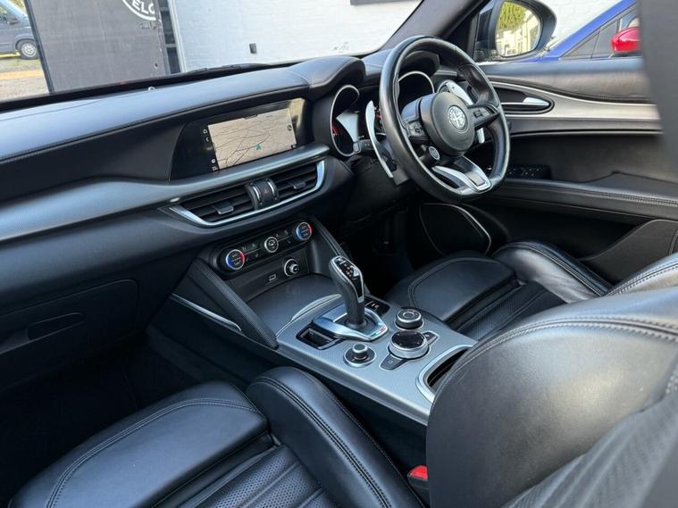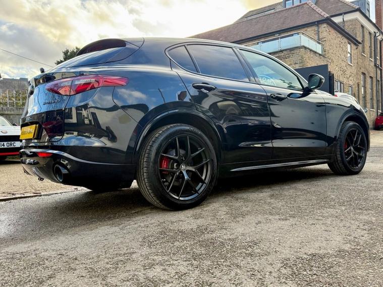 Veloces are pleased to offer for sale this striking Alfa Romeo Stelvio Veloce finished in Volcano Black Metallic with Full Black Sports Leather Interior + Leather Stitched Dashboard.. Great Sounding Harman Kardon Hifi With Uprated Speakers , Sub & Amp.... Black Style Pack With Colour Coded Spoilers & Factory Privacy Glass ... Alfa Connect 8.8 3D Touch Screen Nav Infotainment System ... Apple Carplay / Android Auto ... Adaptive Cruise Control..20 Dark V Stroke Alloy Wheels & Brembo Brake Calipers ...... Wireless Phone Charging ... Convenience Pack ... Rear Reverse Parking Camera ... Bi-Xenon Headlamps with Powerwash ...Drivers Assistance Pack With Adaptive Cruise Control, Blind Spot Monitors & Speed / Traffic Warning Indicators.... Full Service History + Just Been Serviced by Ourselves ..Ask About Our Award Winning Ascari Remaps & Great Sounding Ascari Tuned Exhausts..Low Rate PCP Finance Available...All Our Car Come with a Comprehensive Warranty & 12 Months AA Membership..Stacks of Torque & 40 MPG to Boot..
