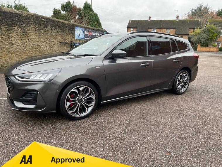 Discover sporty style, everyday practicality, and premium comfort with this fantastic 2023 Ford Focus ST-Line X Estate finished in sleek Magnetic Grey. The perfect blend of performance-inspired design and family-friendly versatility, this high-spec ST-Line X looks sharp from every angle. Under the bonnet, the punchy and efficient 1.0 EcoBoost petrol engine paired with a slick manual gearbox delivers a lively drive, great fuel economy, and the engaging feel the Focus is loved for. With its ST-Line tuned suspension, sporty body kit, and signature red stitching inside, this model really stands out. Inside, the cabin is packed with premium touches and modern tech. The Winter Pack adds heated front seats and a heated steering wheel, giving you instant comfort on chilly mornings. The car also benefits from the Parking Pack, offering front and rear sensors, Active Park Assist, and a rear-view camera, making manoeuvring effortless. This superb example comes with Full Service History, offering complete peace of mind and reassurance. As an ST-Line X, its loaded with top features, including: Large touchscreen with SYNC infotainment & navigation Wireless smartphone integration (Apple CarPlay / Android Auto) Digital instrument cluster Dual-zone climate control Keyless entry & start Premium part-leather sport seats with red stitching LED headlights & signature daytime running lights 18 ST-Line alloys Sporty ST-Line exterior styling With its spacious estate layout, generous boot, and clever storage throughout, this Focus is ideal for family life, commuting, and weekend adventures. It offers the perfect balance of sporty looks, modern tech, and everyday usability.