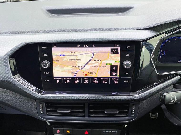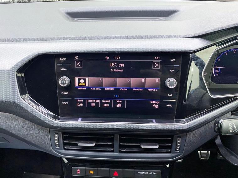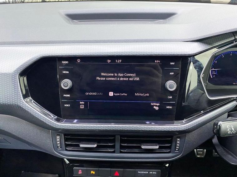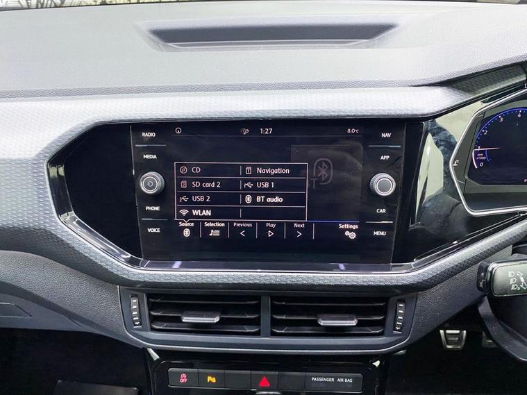 This 2020 Volkswagen T-Cross TSI R-Line boasts a clear vehicle history, offering you peace of mind. This stylish R-Line model is powered by an efficient 1.0 litre Euro 6 compliant petrol engine. It comes equipped with striking LED dipped and main beam headlights featuring automatic range adjustment and a distinctive LED daytime running light signature. Inside, youll find the Composition Media infotainment system, complete with Bluetooth connectivity, and Car-Net App Connect which seamlessly integrates your Android Auto or Apple CarPlay devices. The convenience of automatic driving lights is also included, thanks to the dusk sensor. This T-Cross is designed for modern driving, offering a fuel economy of up to 46 miles per gallon, which is a strong indicator of its efficiency compared to other vehicles in its class. Furthermore, its low CO2 emissions contribute to a more environmentally conscious drive. The inclusion of Bluetooth telephone and audio connection ensures you can stay connected safely and conveniently on every journey.