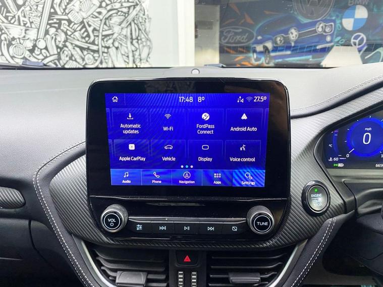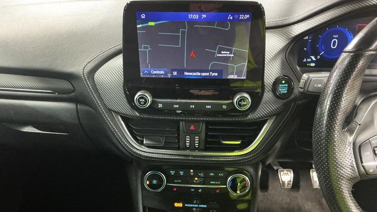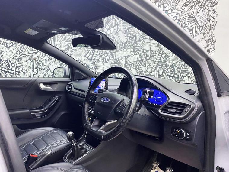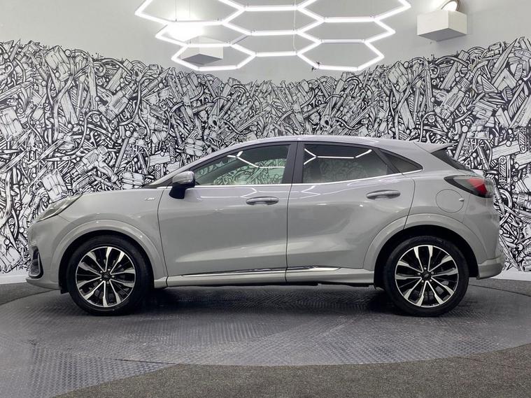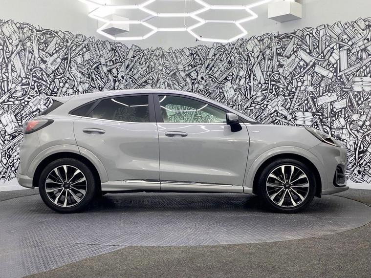 This 2021 Ford Puma ST-Line Vignale offers peace of mind with a clear vehicle history check. This stylish compact SUV features a 1.0L petrol engine, meeting Euro 6 emission standards. The ST-Line Vignale trim enhances its sporty appeal with a unique front bumper design and body coloured lower bodyside mouldings. Inside, youll find comfort is a priority, with the Comfort Pack including heated seats and a heated steering wheel, alongside driver and passenger seat height adjustment. Electronic Stability Control with Traction Control and Emergency Brake Assist are also fitted for your safety. Experience impressive efficiency with this Ford Puma, achieving a highlight fuel economy of 51 miles per gallon. Its low CO2 emissions further contribute to its economical running costs. For those who appreciate performance, this model accelerates from 0 to 60 miles per hour in just 8.9 seconds, demonstrating a strong balance between responsiveness and efficiency compared to other vehicles in its class.