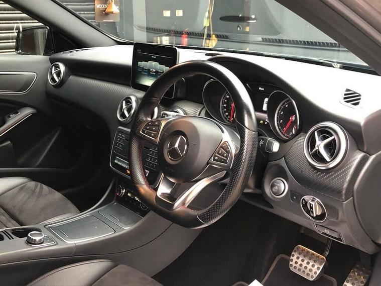 This 2017 Mercedes Benz A Class A180 AMG Line (Premium) boasts exceptionally low mileage for its age, having covered just 41, 000 miles. This Euro 6 compliant 1.6 litre petrol model comes in the desirable AMG Line trim, enhanced by the premium package. It features the striking Night Package and privacy glass for added style and seclusion. Driving convenience is further elevated with Headlamp Assist, automatically activating the headlights, and a 180 degree reversing camera with parking guidelines to aid manoeuvring. Inside, youll find THERMOTRONIC luxury automatic climate control, offering a dual zone system with a clear display for personalised comfort. This A Class offers several advantages over similar vehicles. Its acceleration from 0 to 62mph in just 8.6 seconds provides a responsive driving experience. Furthermore, it sits in a low insurance group, potentially making ownership more affordable. Practicality is also a strong point, with generous boot space designed to accommodate your luggage and shopping needs with ease.