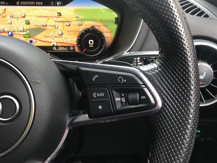 This 2019 Audi TT TFSI Black Edition offers a compelling blend of style and technology, boasting a 2.0 litre petrol engine and meeting Euro 6 emissions standards. This particular example comes with a 3 month warranty for your peace of mind. Inside, youll find comfortable heated front seats, and the convenience of Bluetooth mobile telephone preparation. The Black Edition trim ensures a striking appearance, complemented by advanced LED headlights with dynamic rear indicators and automatic on functionality, all managed by a light and rain sensor. Parking is made easier with rear parking sensors. The Audi TT TFSI Black Edition stands out with its impressive fuel economy, achieving a highlight of 40 miles per gallon, and also benefits from low CO2 emissions. These highlights indicate that this vehicle offers a more efficient and environmentally conscious driving experience compared to many other similar cars on the market.
