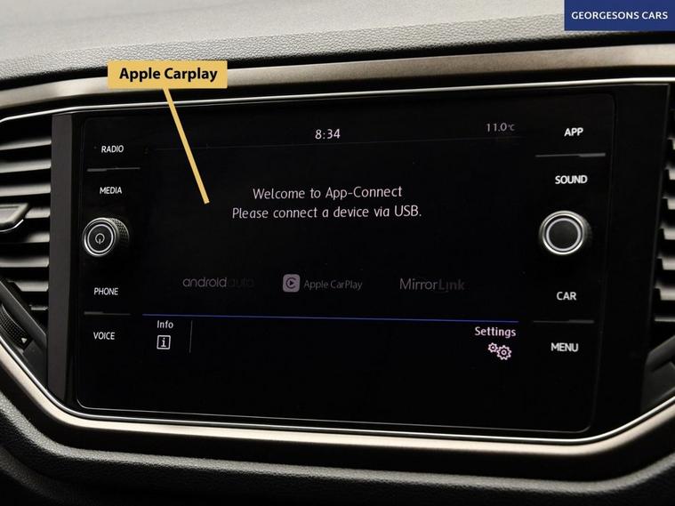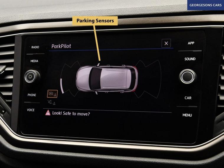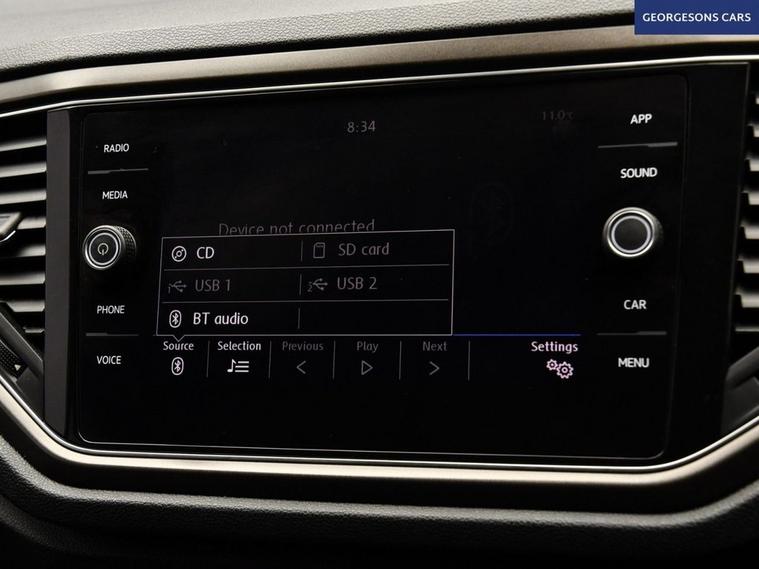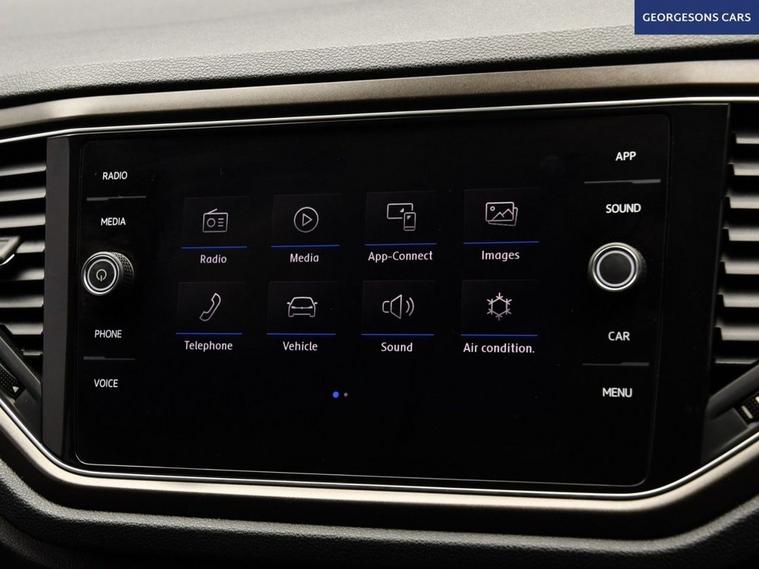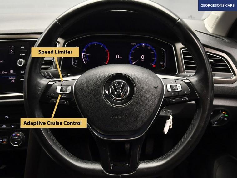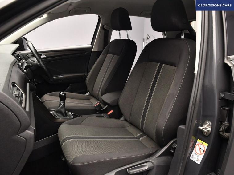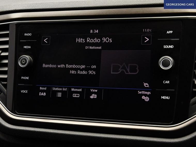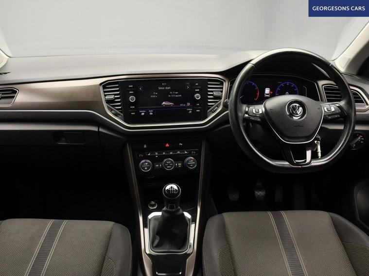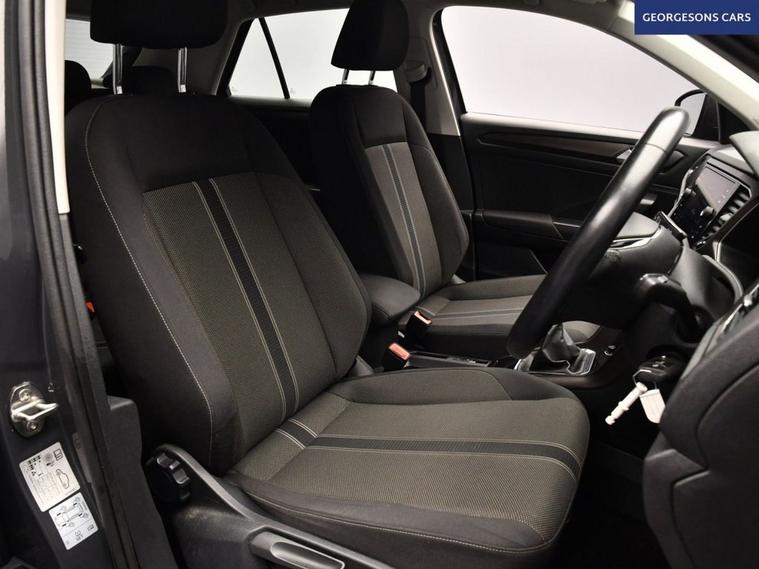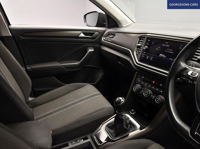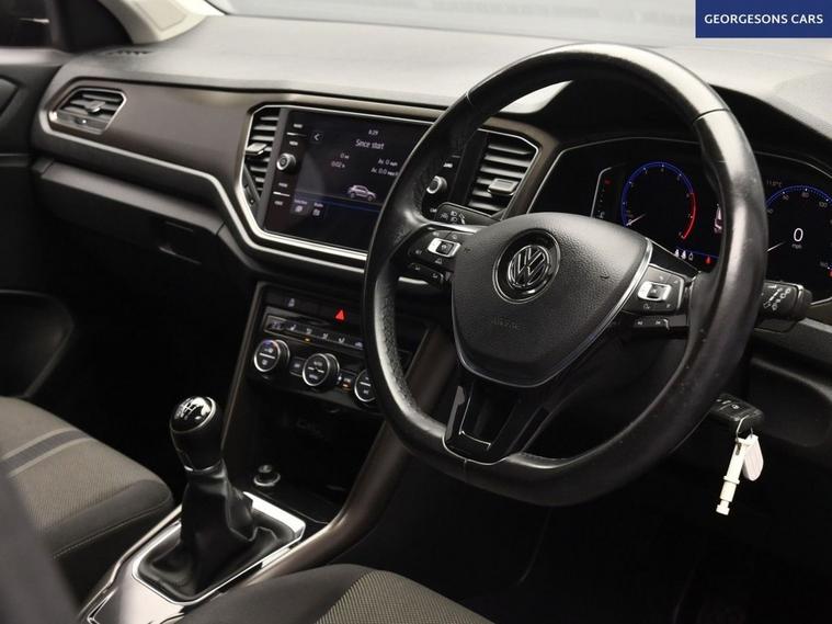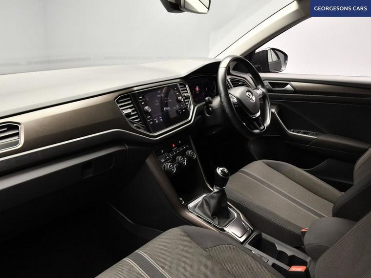 The Volkswagen T-Roc 1.0 TSI SE combines a lively 1.0-litre turbo petrol engine with 110hp, delivering 0-62mph in 10.8 seconds and up to 51.4mpg in this front-wheel-drive setup with a precise 6-speed manual gearbox. The SE trim offers stylish practicality with 17-inch alloys and a premium interior. Navigate effortlessly with Apple CarPlay, Bluetooth and DAB radio. Parking is easy with parking sensors. Stay comfortable with dual-zone climate control. Adaptive cruise control, speed limiter, lane assist and hill assist make every journey relaxed and safe. The spacious five-door SUV includes a 445-litre boot.
