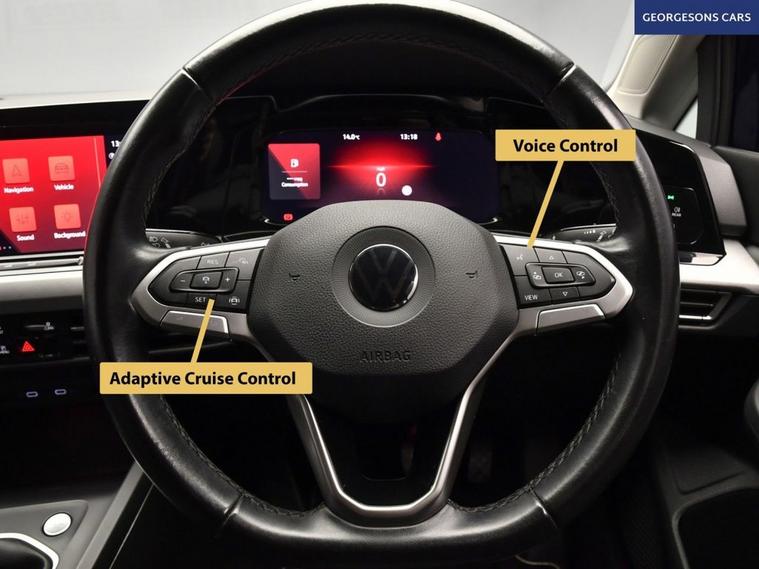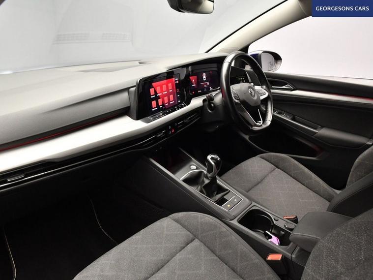 The Volkswagen Golf 1.0 TSI Life combines a lively 1.0-litre turbo petrol engine with 110hp, delivering 0-62mph in 10.2 seconds and up to 54.3mpg in this front-wheel-drive setup with a precise 6-speed manual gearbox. The Life trim offers premium everyday comfort with 16-inch alloys and a high-grade interior. Ambient lighting creates a welcoming cabin, while integrated satellite navigation, Apple CarPlay, Bluetooth and DAB radio keep you connected. Parking is easy with parking sensors. Stay comfortable with climate control. Adaptive cruise control, lane assist and hill assist make every journey relaxed and safe. The spacious five-door hatchback includes a 381-litre boot.