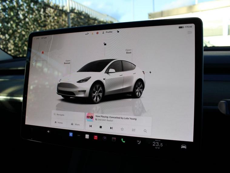 **95.8% BATTERY HEALTH** This 2023 Tesla Model Y presents a superb ownership opportunity, having been meticulously maintained by just one owner since new. As a fully electric vehicle, it offers an impressive battery maximum range of 283 miles, making it ideal for both daily commutes and longer journeys. Inside, youll find a spacious cabin featuring a dual zone climate control system to ensure comfort for all occupants. Entertainment and navigation are seamlessly integrated through a large 15 inch touchscreen, complete with onboard maps and navigation. For added convenience and safety, this Model Y includes a 360 degree camera system for parking assistance and blind spot monitoring. Enjoy your favourite music and media wirelessly via Bluetooth connectivity. The expansive glass roof, which includes a panoramic sunroof with ultraviolet and infrared protection, floods the interior with natural light, creating an airy and pleasant atmosphere. This Model Y also boasts a generous boot space, providing ample room for luggage, shopping, or sports equipment. Its electric powertrain delivers brisk performance, accelerating from 0 to 60 miles per hour in just 6.6 seconds, a testament to its dynamic capabilities. These features collectively highlight how this Tesla Model Y offers a refined and capable driving experience, setting it apart from many other vehicles in its class.