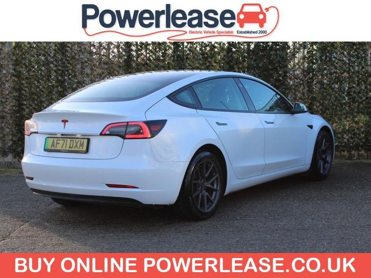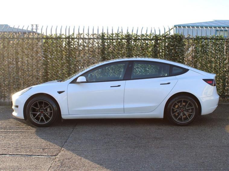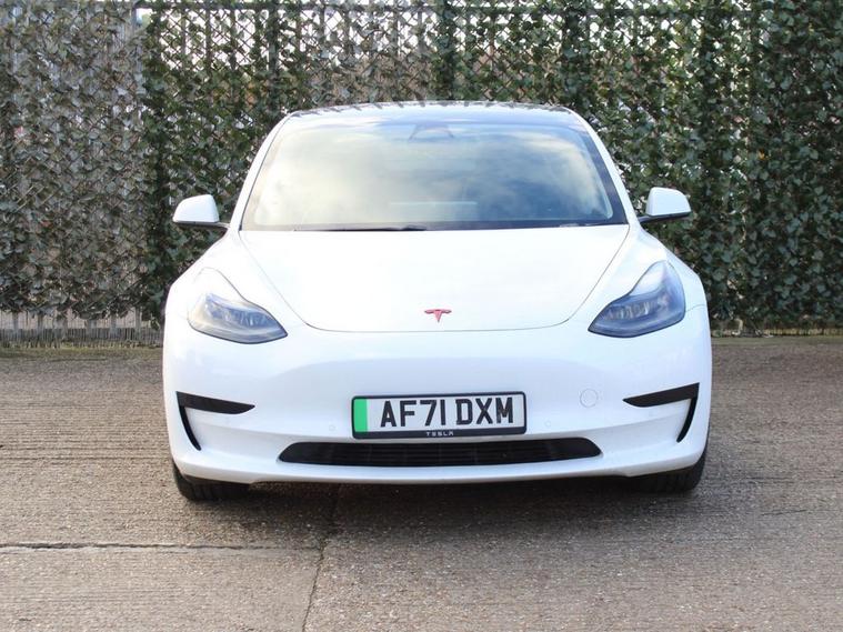 **91.3% BATTERY HEALTH* This 2021 Tesla Model 3 Standard Range Plus is a superb example, having had only one owner since new. As an electric vehicle, it boasts a 53 kWh battery offering a maximum range of 278 miles when new. Charging is convenient, with a full charge at home taking approximately 7 hours and 10 minutes using a 7kW charger, while rapid public charging can take you from empty to 80% in just 29 minutes. This Model 3 comes equipped with modern features including LED headlights, 2 zone climate control for personalised comfort, and a fixed panoramic glass roof that enhances the sense of space. Connectivity is also a strong point, with Bluetooth integration and inductive charging mats for two smartphones. The large boot space offers practical storage solutions, making this Tesla Model 3 a versatile choice for everyday use and longer journeys. The combination of its impressive electric range, efficient charging capabilities, and desirable features like the panoramic roof and wireless phone charging, sets it apart from many other vehicles in its class, offering a refined and technologically advanced driving experience.