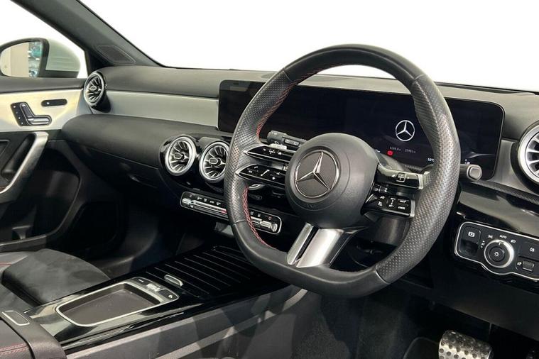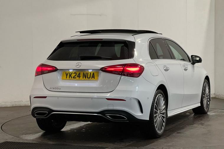 This 2024 Mercedes Benz A Class A250e AMG Line (Premium Plus) boasts a clear vehicle history and has had only one owner from new. It features a 1.3 litre petrol plug in hybrid engine, meeting Euro 6 emission standards. This model comes equipped with Acoustic Ambient Protection, a Mode 3 charging cable for wallbox and public charging stations (4m straight), and Remote and Charging Services Plus. For convenient charging, it includes an AC charging system with 11kW capability and a DC charging system rated at 22 kW. The AMG Line trim enhances the sporty appeal of this A Class. The plug in hybrid technology offers an efficient way to drive, combining electric power for shorter journeys with the flexibility of a petrol engine. The Premium Plus package ensures a high level of comfort and technology, making this Mercedes Benz A Class a refined choice for everyday driving and longer trips alike.