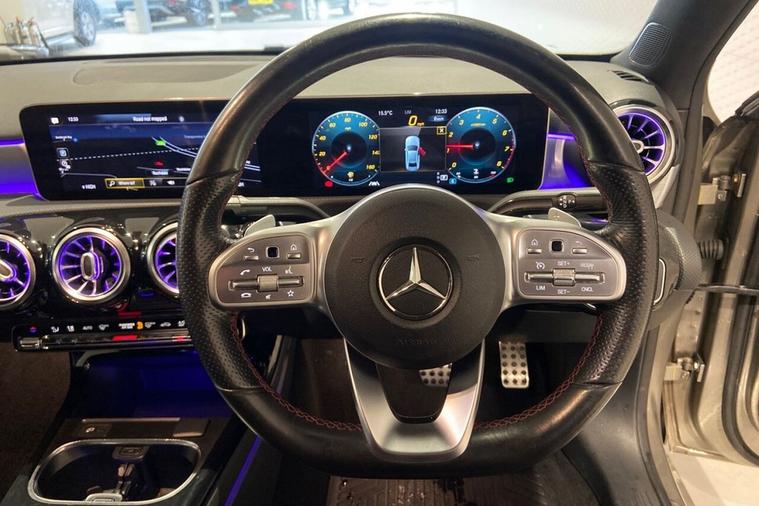 This 2020 Mercedes Benz A Class A200 AMG Line (Premium 2) boasts exceptionally low mileage for its age, having covered just 31, 000 miles, and comes with an MOT valid until May 2026. This Euro 6 compliant 1.3 litre petrol model presents a clear vehicle history, offering peace of mind. The AMG Line trim enhances its sporty appeal, while the Premium 2 package includes impressive features such as LED High Performance Headlamps with integrated LED Daytime Running Lights, a comprehensive Parking Package with front and rear sensors and a 180 degree reversing camera with guidelines, and convenient wireless charging. Dual Bluetooth interfaces add to the modern connectivity. With an impressive fuel economy of 46 mpg, this A Class offers an economical driving experience, further enhanced by its low CO2 emissions, indicating it is a more environmentally conscious choice compared to many similar vehicles. The combination of its premium Mercedes Benz branding, advanced technology, and excellent condition makes this A200 AMG Line a compelling option for those seeking a stylish and efficient compact car.