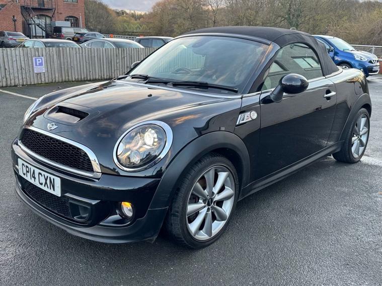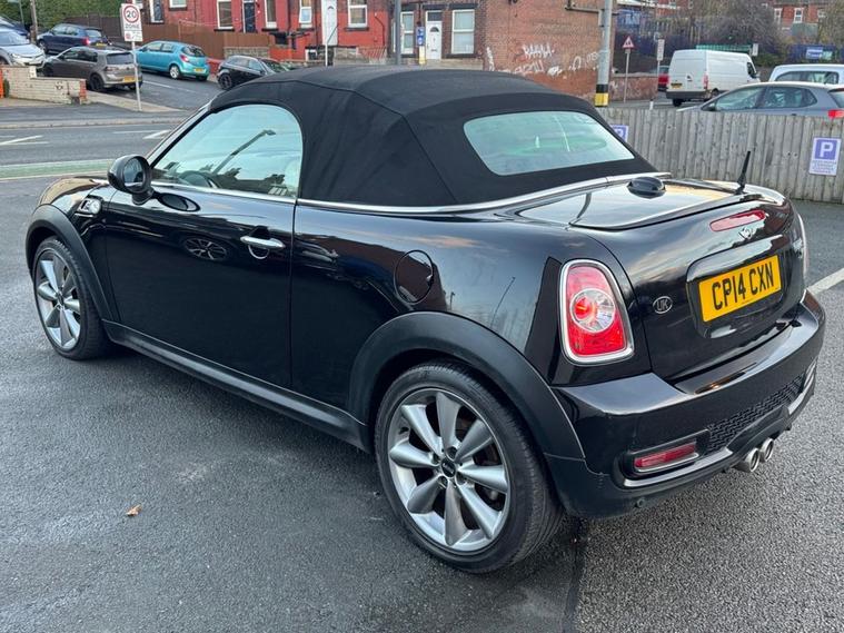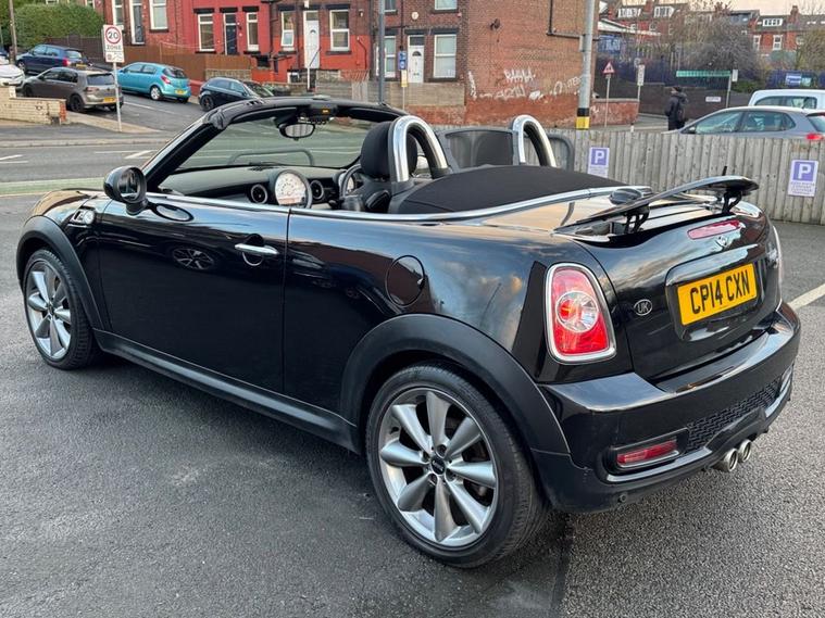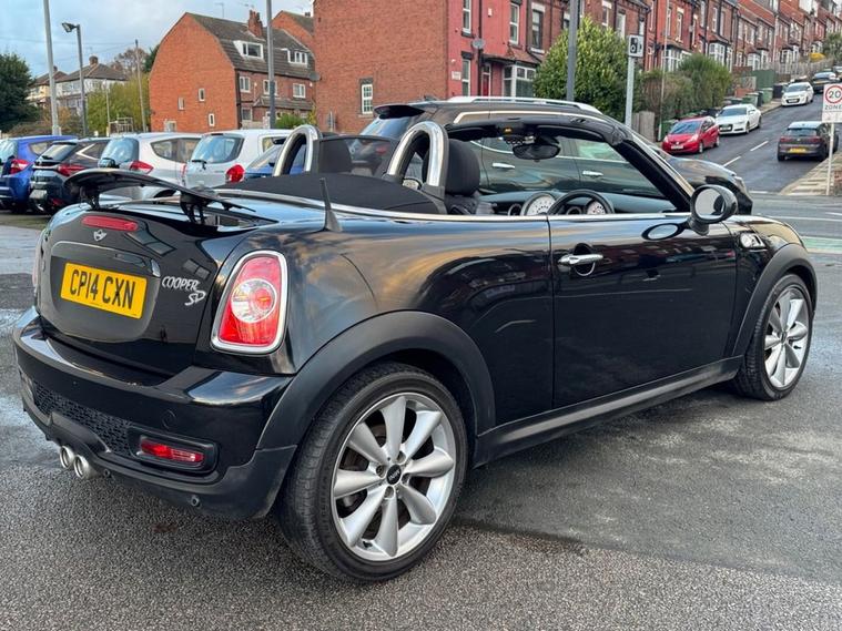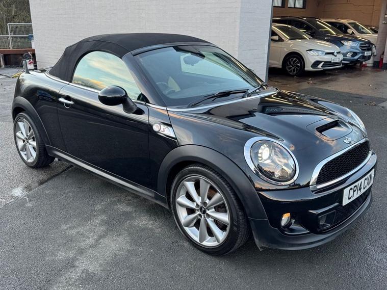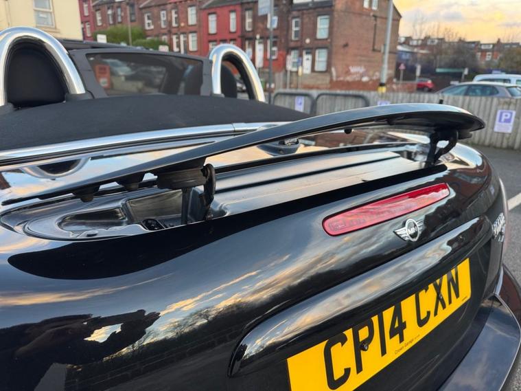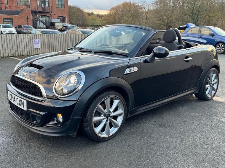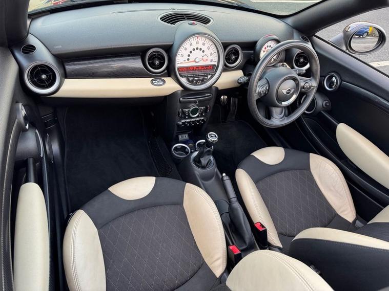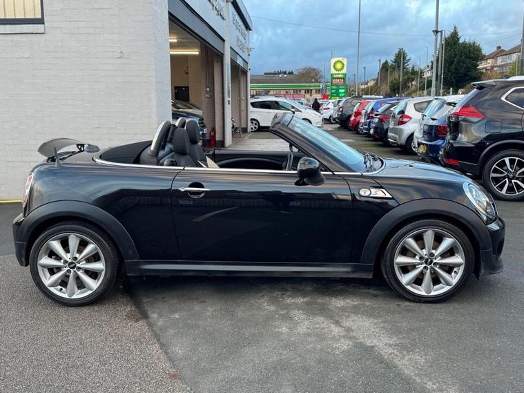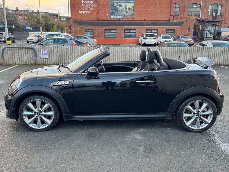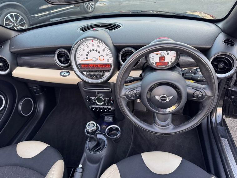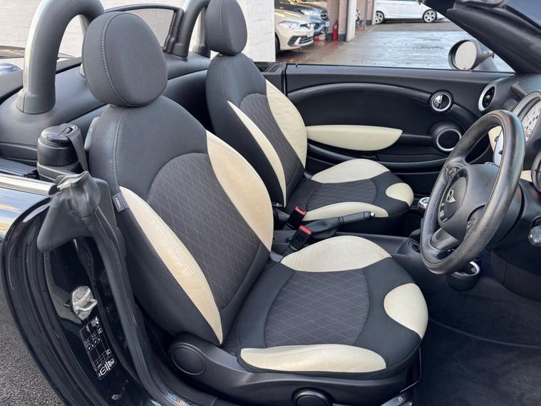 Midnight Black Mini Roadster 2.0 Cooper SD Convertible with over £4000+ of MINI upgrades. The upgrades includes the 17 alloys (£485), Bi Xenon Headlights (£485), Chilli Pack (£1730), Automatic Air conditioning (£235), cross check leather (£355) and Rain sensing wipers/auto headlights (£90) to name a few. Only £35 year road tax and an impressive 60mpg + fuel efficiency. Call 01138032273 or visit dealer's website