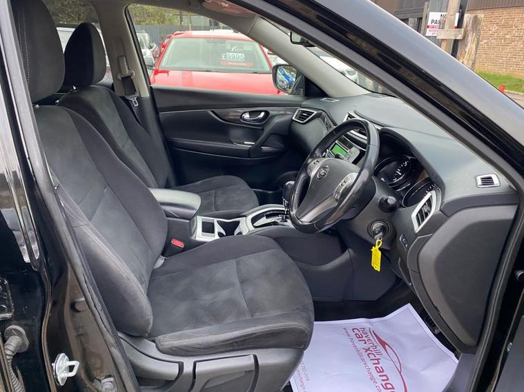 AUTOMATIC+ONLY 56, 841 MILES+LONG MOT UNTIL 10.11.2026+5 INCH HIGH DEFINITION SCREEN WITH RADIO-CD AUDIO SYSTEM+BLUETOOTH+DUAL ZONE CLIMATE CONTROL AIR-CONDITIONING+RAIN-SENSING WINDSCREEN WIPERS+FRONT & REAR PARKING ASSISTANCE+PANORAMIC GLASS ROOF+EBISU BLACK PAINT+17 INCH ALLOY WHEELS. At Haverhill Car Xchange we would like to offer you our AUTOMATIC Nissan X-Trail Acenta SUV which has been finished in a Enisu Black paint with Graphite Cloth upholstery. Specification Includes a 5 inch High Definition Screen which features Radio-CD Audio System, Bluetooth with Microphone, USB and AUX Input, Dual Zone Climate Control Air-Conditioning, Cruise Control with Speed Limiter, Front and Rear Parking Assistance, Body Coloured Bumpers/Door Mirrors with Integrated Side Indicators, Chrome Door Handles, Black Honeycomb Front Grille, LED Daytime Running Lights, Front Fog Lights with Chrome Ring, Anti-Dazzle Rear-View Mirror Panoramic Glass Roof, Rain-Sensing Windscreen Wipers, Front & Rear Parking Assistance, Multifunction Steering Wheel, Rear Privacy Glass, 17 Inch Alloy Wheels, Hill Start Assist, ABS Breaking System, Airbags, Alarm, Immobiliser, Remote Central Locking and ISOFIX Anchorage Points for Child Seats.