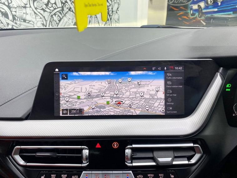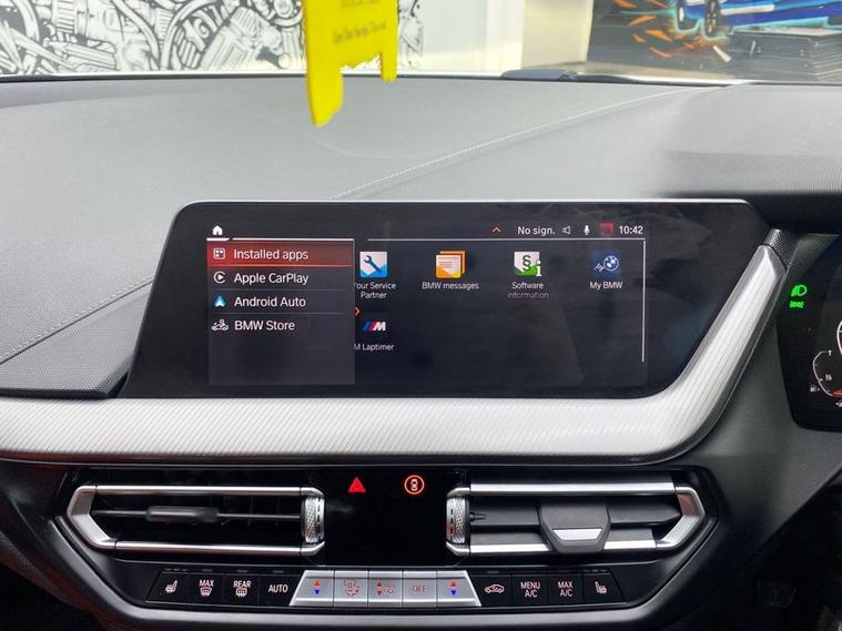This 2021 BMW 1 Series 118i M Sport (LCP) boasts a clear vehicle history and has had only one owner, offering excellent provenance. This Euro 6 compliant model features a responsive 1.5L petrol engine and is presented in the sporty M Sport trim. Notable features include a Head Up Display, the comprehensive Technology Pack which adds Bluetooth, automatic LED headlights, front and rear parking sensors, a rear parking camera, and wireless phone charging. The BMW Adaptive LED Headlights further enhance visibility, while the Park Assistant simplifies manoeuvring. Inside, youll find the striking Perforated Dakota Leather in Magma Red with Grey Highlight. The performance of this BMW 1 Series is highlighted by its brisk 0-60mph acceleration in just 8.9 seconds, demonstrating its dynamic capability. The generous boot space provides practicality for everyday use and longer journeys, setting it apart from many other vehicles in its class. This combination of engaging driving dynamics, advanced technology, and thoughtful design makes this 1 Series a compelling choice.