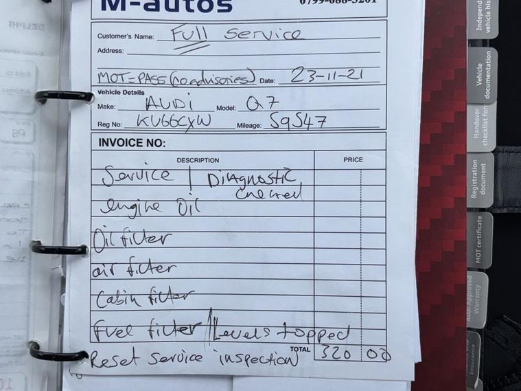 This 2016 Audi Q7 TDI V6 S line presents a remarkable opportunity with its exceptionally low mileage of just 80, 738 miles for its age. This impressive seven seater SUV boasts a powerful 3.0 litre diesel engine paired with Audis renowned four wheel drive system, ensuring confident performance in all conditions. As a Euro 6 compliant vehicle, it meets stringent emission standards. The S line trim level enhances its already sophisticated appeal, and it comes equipped with a host of desirable features including Deluxe Four Zone Automatic Climate Control for personalised comfort, a Bluetooth Interface for seamless connectivity, and Heated Front Seats for those colder journeys. Furthermore, its All Weather LED Headlights provide excellent visibility, complemented by a Light and Rain Sensor that automatically manages your headlights and wipers. The Audi Q7 TDI V6 S line offers a compelling blend of performance and practicality. Its acceleration from 0 to 60 miles per hour in just 6.5 seconds highlights its dynamic capabilities, making it a pleasure to drive. This vehicle also benefits from a low insurance group, which can help to reduce ownership costs. With a substantial towing weight of 2800 kg, it is well suited for carrying loads or towing caravans and trailers. These attributes, combined with its spacious interior and advanced technology, position this Q7 as a superior choice for those seeking a premium, capable, and comfortable SUV.