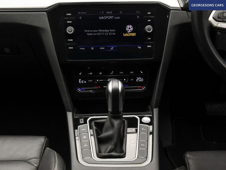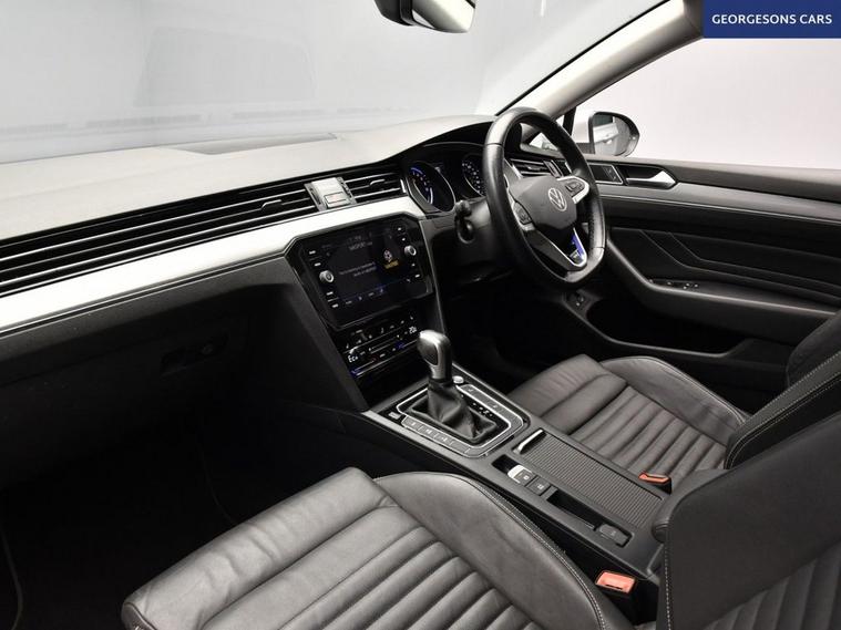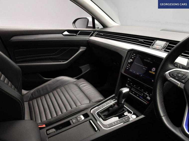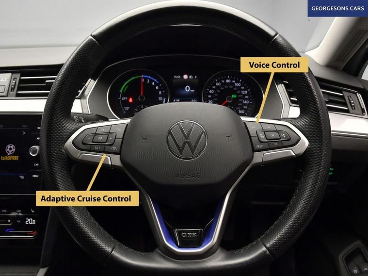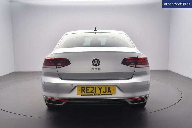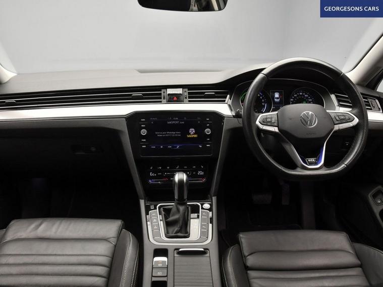 The Volkswagen Passat GTE combines a 1.4-litre turbo petrol engine with a 115hp electric motor for a total 218hp, delivering 0-62mph in 7.6 seconds and up to 45 miles pure-electric range in this front-wheel-drive setup with a lightning-fast 6-speed DSG automatic. The sporty GTE trim brings 18-inch alloys, blue styling accents and premium tech. With eight services, this Passat is in superb condition. Navigate effortlessly with integrated satellite navigation, Apple CarPlay, Bluetooth and DAB radio. Parking is easy with parking sensors. Stay comfortable with dual-zone climate control and heated front seats. Adaptive cruise control makes every journey relaxed and safe. The spacious four-door saloon includes a huge 586-litre boot.