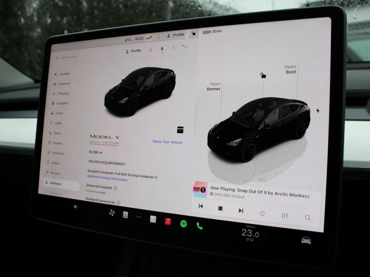 **91.8% BATTERY HEALTH** WHITE LEATHER ** ENHANCED AUTOPILOT ** This 2022 Tesla Model Y Performance is a remarkable example, having had only one owner since new. As an electric vehicle with Four Wheel Drive, it offers an impressive battery total capacity of 85 kWh, providing a maximum range of 319 miles when new. This Model Y comes equipped with Enhanced Autopilot for a more assisted driving experience, alongside LED headlights that automatically turn on. Comfort is enhanced with heated rear seats, and safety is bolstered by Blind Spot Monitoring. The performance of this Model Y is truly exceptional, highlighted by its rapid 0-60mph acceleration in just 3.5 seconds, demonstrating its superior capability compared to other vehicles in its class. Recharging is convenient, with a full charge at home on a 7kW charger taking approximately 12 hours, while the fastest public charging can replenish the battery from empty to 80% in as little as 25 minutes. This combination of range, charging speed, and exhilarating performance makes the Tesla Model Y a standout choice.