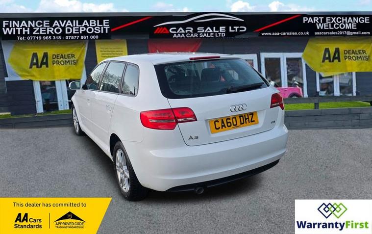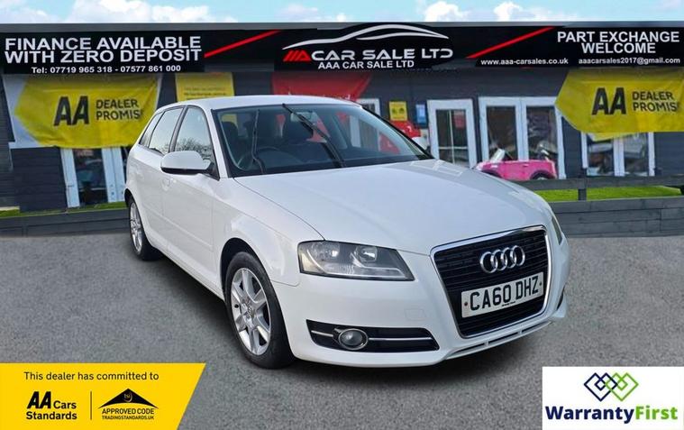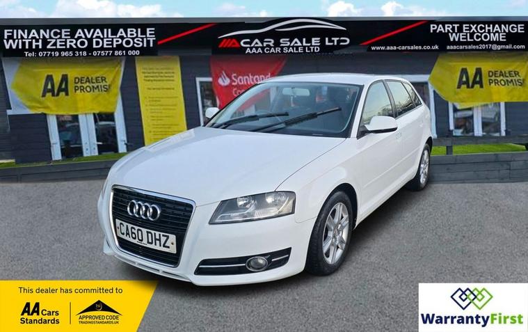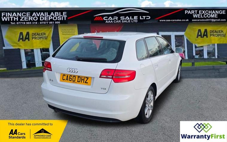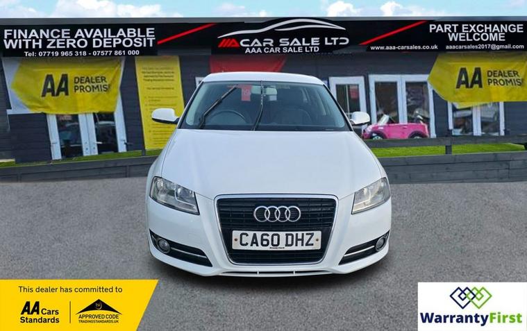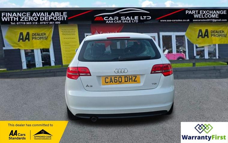 **AAA CAR SALES DARLINGTON LTD HAVE THE PLEASURE TO PRESENT THIS AUDI A3 1.6 TDI SE Sportback 5dr Diesel Manual Euro 5 (s/s) (105 ps) IN IBIS WHITE PAINTWORK **** SERVICE HISTORY - SERVICED BY AUDI AT 18K, 30K, 38K, 41K, 45K, 48K, 51K, 56K, 60K, 63K, 66K SERVICED BY OUR TEAM AT 68K. ALL OUR CARS GO THROUGH 72 POINT INSPECTION, ALL OF OUR CARS COME WITH 12 MONTHS AA BREAKDOWN COVER, FRESH MONTH MOT WITHOUT ADVISORIES, INTERIM SERVICE, HPI CHECKED VIA EXPERIAN, 3 MONTHS WARRANTY WITH THE OPTION TO UPGRADE ***AUTOTRADER CUSTOMER SERVICE AWARD 2019, 2020 2021. 2022 & 2023***, WE ARE OPEN 7 DAYS A WEEK FOR YOUR CONVIENIENCE, CALL 01325950841 OR EMAIL US AT hello dealer's website or website dealer's website YOU CAN BUY WITH FULL CONFIDENCE FROM AAA CARS CHECK OUR AUTOTRADER REVIEWS FOR FULL PEACE OF MIND,