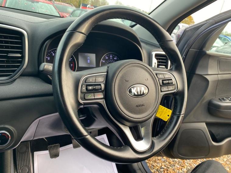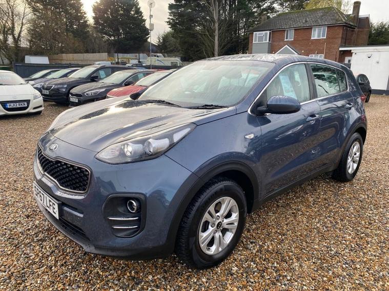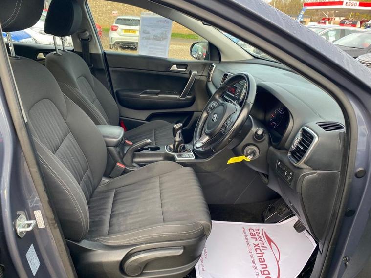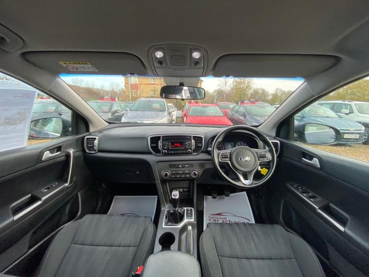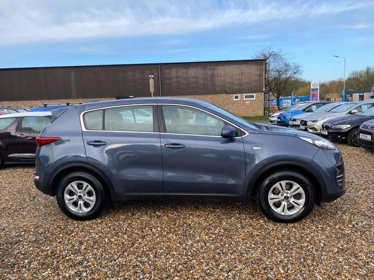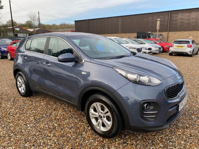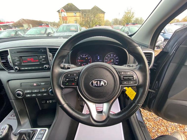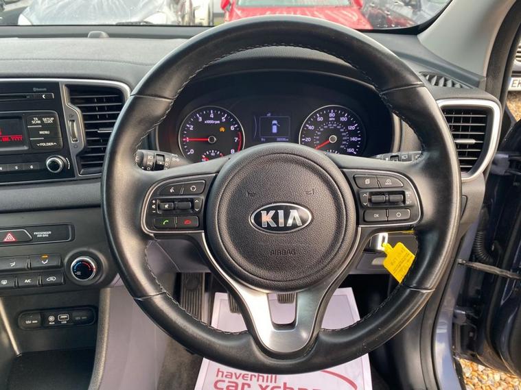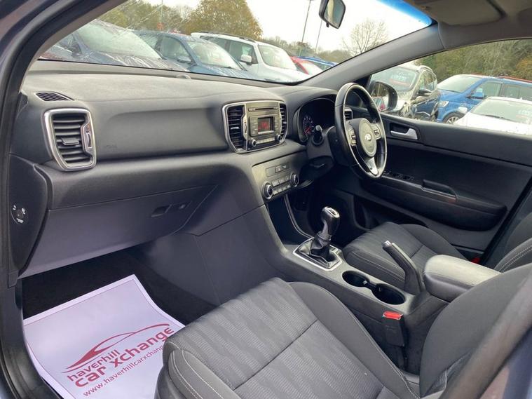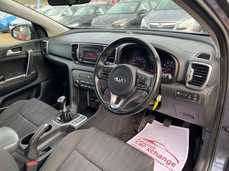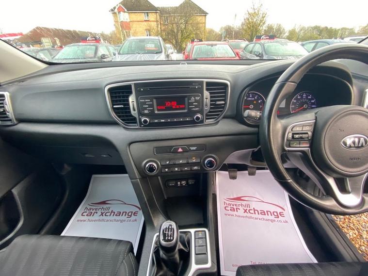 ONLY 38, 393 MILES+LONG MOT UNTIL 06.09.2026+SERVICE HISTORY+DAB DIGITAL RADIO-CD-MP3 PLAYER+BLUETOOTH WITH VOICE RECOGNITION AND MUSIC STREAMING+AIR-CONDITIONING+LED DAYTIME RUNNING LIGHTS+METALLIC PLANET BLUE PAINT+16 INCH ALLOY WHEELS. At Haverhill Car Xchange we would like to offer you our Kia Sportage GDi SUV which has been finished in a metallic Planet Blue paint with Black cloth upholstery. Specification Includes DAB Radio, CD Player with MP3 Compatibility, USB and AUX Ports for Connection of an Audio Media Device-iPod-Memory Stick, 12 Volt Power Sockets in Front and Rear Consoles, Air-Conditioning, Cruise Control with Speed Limiter, Gear Shift Indicator, All-Round Electric Windows with Drivers Auto Done Function, Body Coloured Bumpers/Door Handles/Rear Spoiler and Door Mirrors, Black Diamond Radiator Grille, Chrome Front Grille Surround, LED Daytime Running Lights, Front Fog Lights, Leather Trimmed Multifunction Steering Wheel, Tinted Glass, 16 Inch Alloy Wheels, Power Steering, ABS Breaking System, Child Safety Rear Door Locks, Airbags, Alarm, Immobiliser, Remote Central Locking and ISOFIX Anchorage Points for Child Seats.