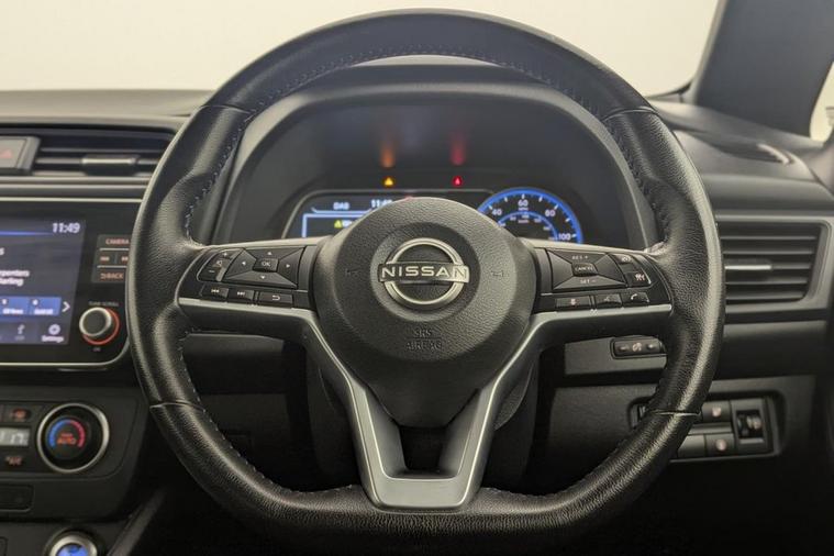 Henson Car Store presents the NISSAN LEAF 39kWh Acenta Hatchback 5dr Electric Auto (150 ps) finished in White, this car comes with service history. This 2022 Nissan Leaf Acenta is a superb example, having been owned by only one person since new. This electric vehicle boasts a 41 kWh battery, offering a maximum range of 168 miles when fully charged. Recharging at home using a 7kW charger takes approximately 7 hours and 30 minutes, while rapid public charging can take the battery from empty to 80% in just 1 hour and 20 minutes. The Acenta trim comes equipped with Intelligent Auto Headlights that switch on automatically, and Automatic Climate Control with a pollen filter and timer to keep the cabin comfortable. Further enhancing your driving experience are features like Blind Spot Intervention, which helps you stay aware of your surroundings, and seamless integration with your smartphone through Android Auto and Apple CarPlay. The Intelligent Key with Start Push Button allows for keyless entry and ignition. This Nissan Leaf also offers a generous boot space, making it a practical choice for everyday use and longer journeys, setting it apart from other vehicles in its class.