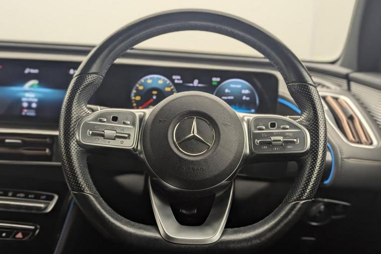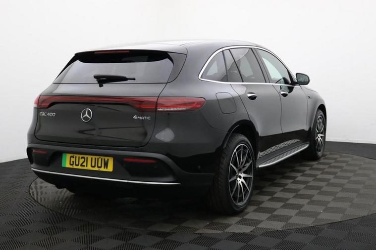 Henson Car Store presents the MERCEDES-BENZ EQC EQC 400 80kWh AMG Line SUV 5dr Electric Auto 4MATIC finished in Black, this car comes with service history. This 2021 Mercedes-Benz EQC 400 AMG Line offers an exceptional blend of electric performance and luxury. As a fully electric vehicle with Four Wheel Drive, it delivers a smooth and responsive driving experience. This EQC boasts a substantial 88 kWh battery, providing a maximum range of 245 miles when new. Charging is convenient, with a full charge at home taking approximately 12 hours and 13 minutes using a 7kW charger, while rapid public charging can achieve 80% capacity in just 45 minutes. The AMG Line trim enhances its appeal with premium features, including the Parking Package with Parking Assist PARKTRONIC and a Rear Camera, the KEYLESS-GO Comfort Package for effortless entry, and advanced MULTIBEAM LED Headlights for superior visibility. The driving dynamics of this Mercedes-Benz EQC are truly impressive, highlighted by its rapid acceleration from 0-60mph in just 5.1 seconds, showcasing its electric power. Safety and convenience are further enhanced by Blind Spot Assist, ensuring greater awareness on the road. Inside, occupants can enjoy the quality of the Mercedes-Benz Sound System. Practicality is also a strong point, with generous boot space designed to accommodate your needs. These features collectively position the EQC 400 AMG Line as a superior choice for those seeking an electric SUV that excels in performance, technology, and comfort.