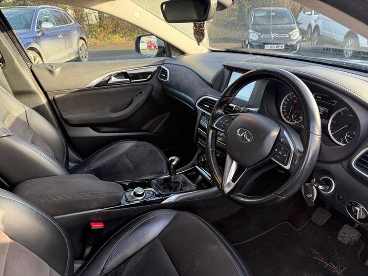 This 2016 Infiniti Q30 d Premium offers peace of mind with a 6 month warranty and a fresh 12 month MOT provided on purchase. This stylish hatchback is equipped with a 1.5L Diesel Engine and meets Euro 6 emission standards. Inside, youll find a comfortable and convenient cabin featuring heated front seats, automatic air conditioning with dual zone climate control and a rear vent centre console. Stay connected on the go with Bluetooth audio streaming and phone book functionality. The Infiniti Q30 d Premium also boasts automatic headlight activation for enhanced visibility and rear parking sensors to assist with manoeuvring. These features, combined with its efficient diesel engine and premium trim, make this 2016 Q30 a compelling choice for those seeking a well equipped and reliable vehicle.