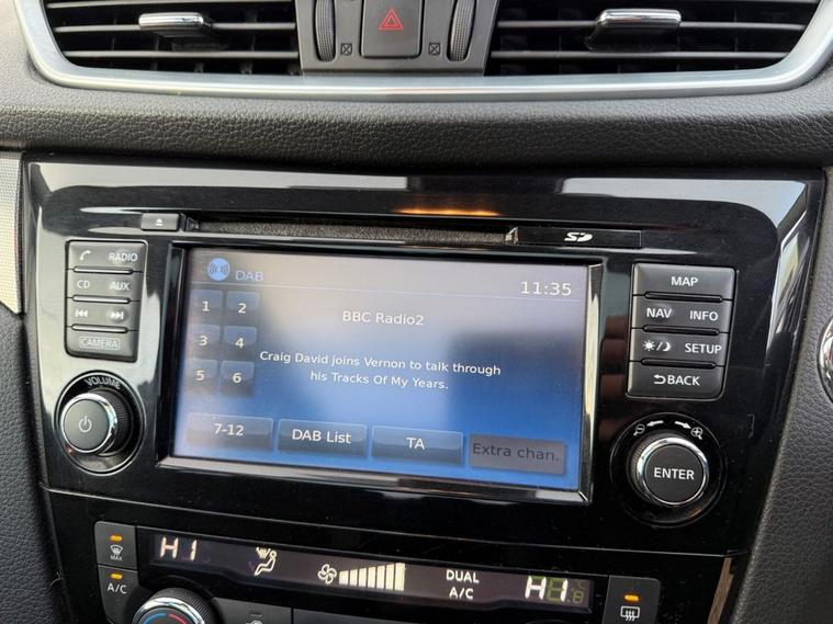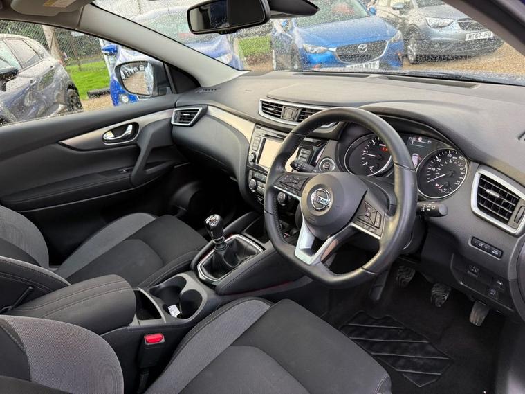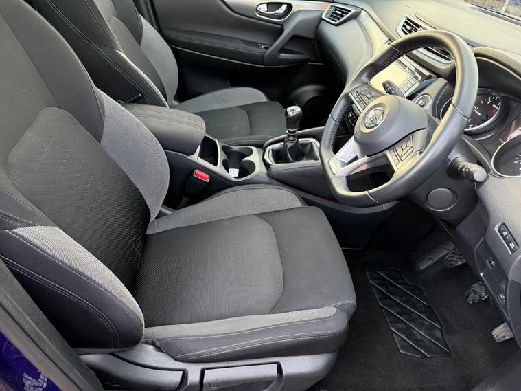This 2018 Nissan Qashqai N Connecta is a well specified and economical SUV with a clear vehicle history check and a Euro 6 compliant 1.5 diesel engine. It will come with a new MOT on purchase, a full service and our free 12 month parts and labour warranty when bought in December, providing strong reassurance and excellent value. With only 76, 848 miles and an outstanding combined fuel economy of 74 MPG, running costs are significantly lower than many similar SUVs. The N Connecta trim offers highly desirable features that enhance comfort and convenience. Dual zone climate control, Bluetooth, DAB radio, smartphone app integration, a leather D shaped steering wheel, lumbar support seats and the NissanConnect Evo touchscreen system all contribute to a more refined driving experience. Practical elements include a luggage board system, boot stow function, ambient lighting, multiple storage areas and height adjustable seating. The Smart Vision Pack adds intelligent auto headlights, high beam assist, front and rear parking sensors and the intelligent around view monitor which includes a 360 degree camera system. Intelligent key with keyless entry and push button start adds further convenience. Auto wipers, anti dazzle rear view mirror, one touch electric windows and LED signature daytime running lights complete a well rounded interior and technology package. The exterior features 18 inch bi colour alloy wheels, privacy glass, electric auto folding heated mirrors with LED indicators, matt silver roof rails and a shark fin antenna. The design is modern, clean and practical with a rear roof spoiler and chrome glass surrounds adding visual appeal. Safety features include intelligent emergency braking, lane departure warning, hill start assist, six airbags, ISOFIX, cruise control with speed limiter, selectable steering modes, ESP, ABS, EBD, TPMS and a Thatcham category 1 alarm system. These features provide strong safety credentials for both new and experienced drivers. For anyone looking for a high spec Qashqai with exceptional economy, 360 camera technology, dual climate control and low ownership costs, this 1.5 dCi N Connecta is an excellent choice.