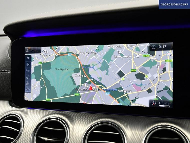 The Mercedes-Benz E220d AMG Line (Premium) combines a refined 2.0-litre turbo diesel with 194hp, delivering 0-62mph in 7.4 seconds and up to 61.4mpg in this rear-wheel-drive setup with a silky 9-speed G-Tronic+ automatic. The Premium pack elevates luxury with 19-inch AMG alloys, extended lighting and top-tier tech. With one owner, this E-Class is in superb condition. Enjoy the Burmester surround sound system and ambient lighting, while integrated satellite navigation, Apple CarPlay, Bluetooth and DAB radio keep you connected. Parking is effortless with reverse camera and parking sensors. Stay comfortable with rear climate control, dual-zone climate and heated front seats. Electric memory seats, electric tailgate, lane assist and push-button start add everyday luxury. The spacious four-door saloon includes a huge 540-litre boot.