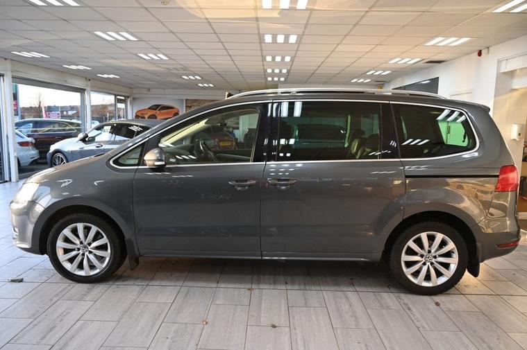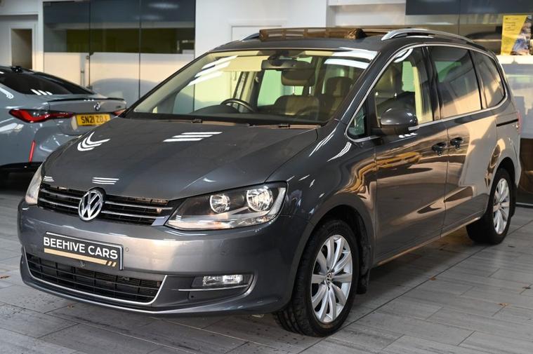 DRIVE AWAY TODAY OR FREE HOME DELIVERY TO YOUR DOORSTEP FINANCE & PART EXCHANGE ARRANGED ONLINE** 7 DAY MONEY BACK GUARANTEE** Lovely Mpv Vw Sharan tdi bluemotion tech sel dsg automatic in metallic grey with full service history also has timing belt done sat nav cd dab radio bluetooth media traffic set up panoramic glass roof full leather seats with armrest heated seats electric seat electric heated door mirrors rear parking aid sensors alloys privacy