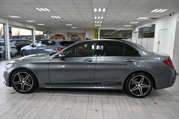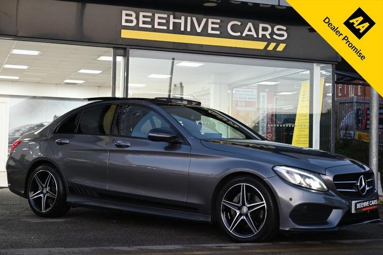 DRIVE AWAY TODAY OR HOME DELIVERY ANYWHERE IN MAINLAND UK FINANCE & PART EXCHANGE ARRANGED ONLINE **7 DAY MONEY BACK GUARANTEE** Nice spec Mercedes c220d amg line premium in metallic grey with full service history sat nav cd dab radio bluetooth media usb reverse camera panoramic glass roof full leather seats with armrest heated seats electric memory seats electric folding door mirrors front and rear parking aid sensors xenon lights eco comfort sport individual dynamic driving modes flat bottom steering wheel with f1 style paddleshifts push button start stop electric push button tailgate alloys privacy