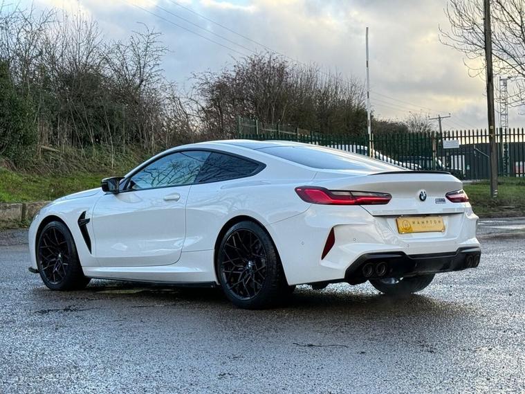 Hampton Car Sales is proud to offer this exceptional BMW M8 4.4i V8 Competition Coupe, a stunning 625 ps performance machine that has covered only 19, 556 miles from new and comes backed by a full BMW service history. Presented as one of the best examples currently availableand the best priced for its age and mileagethis M8 delivers an extraordinary blend of luxury, power and precision. From factory it comes equipped with the highly desirable Competition Package, BMWs xDrive 4WD system, Steptronic automatic transmission, M adaptive suspension, M Sport exhaust, soft-close doors, advanced LED lighting, BMW Live Cockpit Professional with a fully digital display, Harman Kardon audio, heated M Sport seats, carbon interior trim, head-up display, parking assistant, and a host of driver-assistance technologies that elevate every journey. With over 200 five-star Google reviews, Hampton Car Sales offers total peace of mind, and this outstanding M8 Competition is a perfect reflection of the quality we are known for.